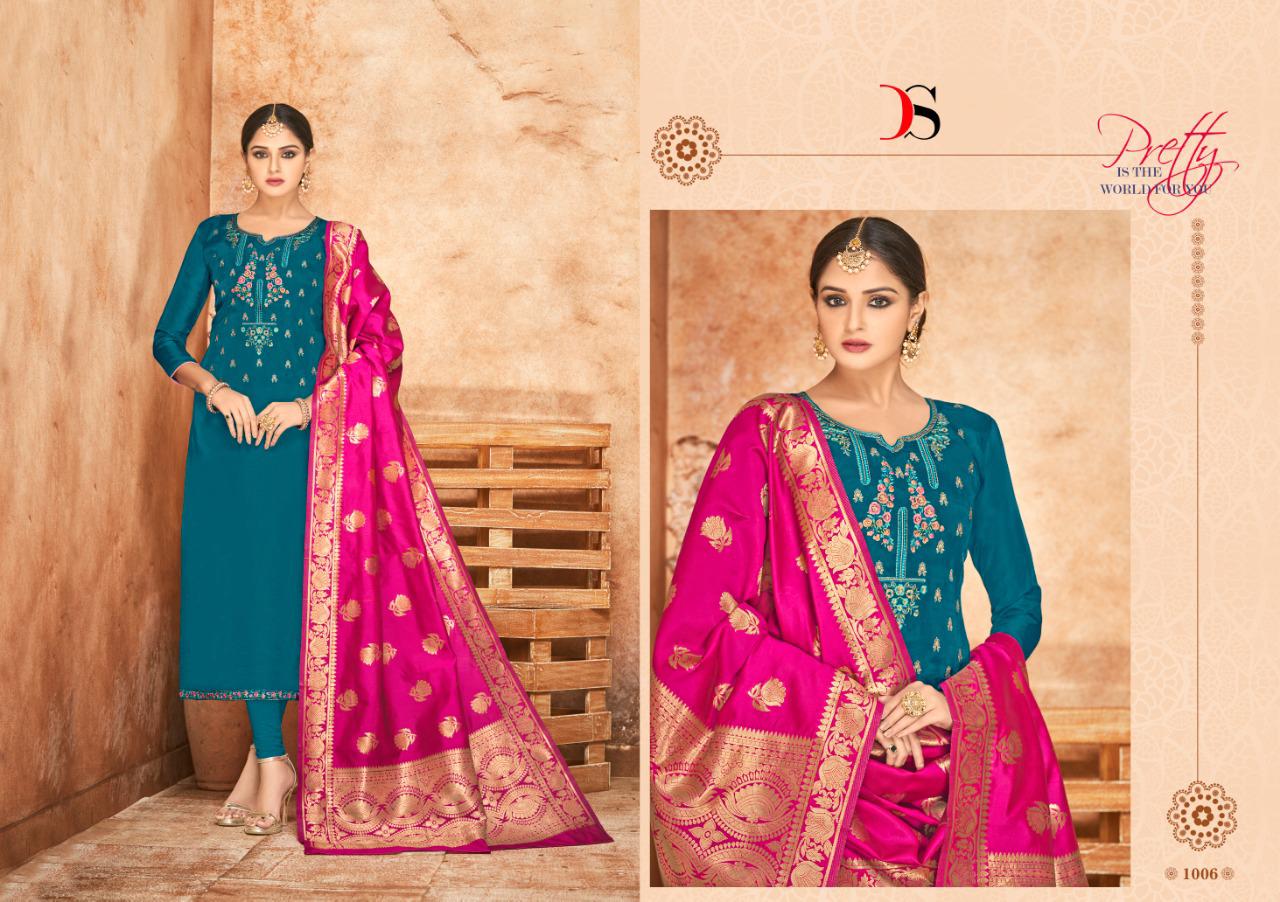 *DEEPSY suits Presents our new Catlog *ELINA* *Pure Viscose Opada Silk Collection * Name - * ELINA* Fabric details - Top - Pure Viscose Opada Silk with Embroidery Bottam: Dull santoon Dup - Banaras silk Jequard (36Â?) Pcs:6 Rate - *1199+ Gst* Looking for positive response |