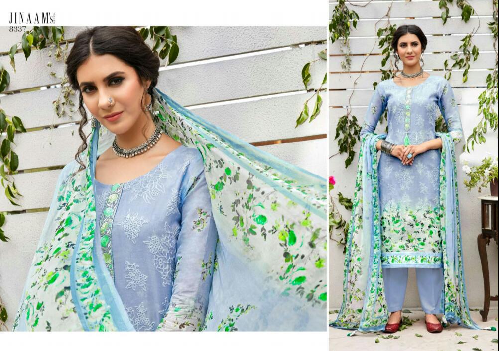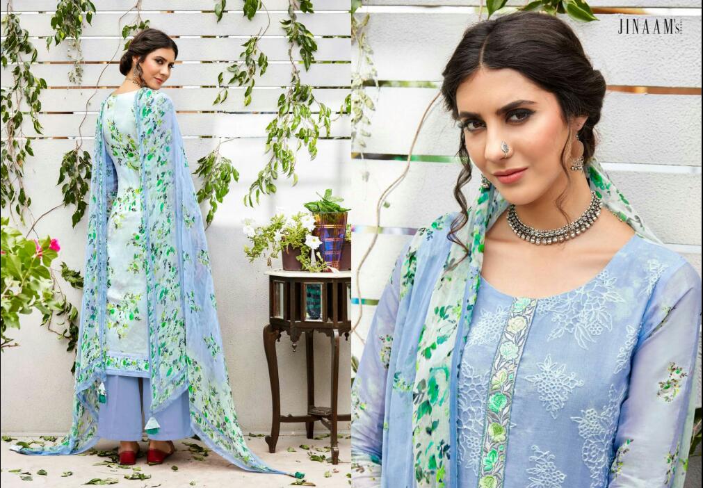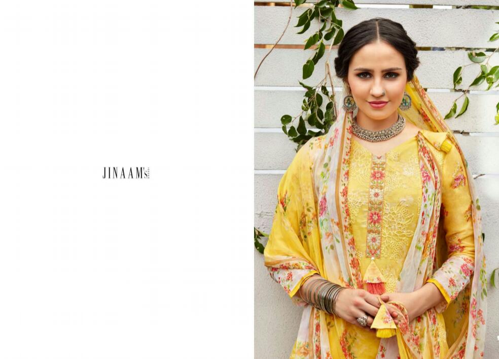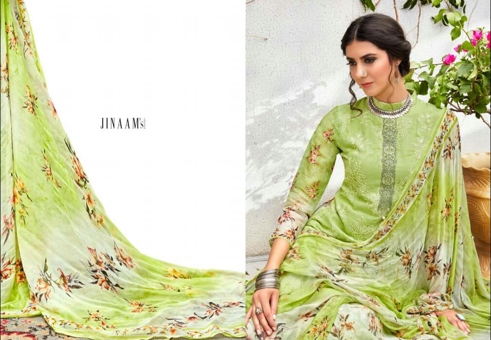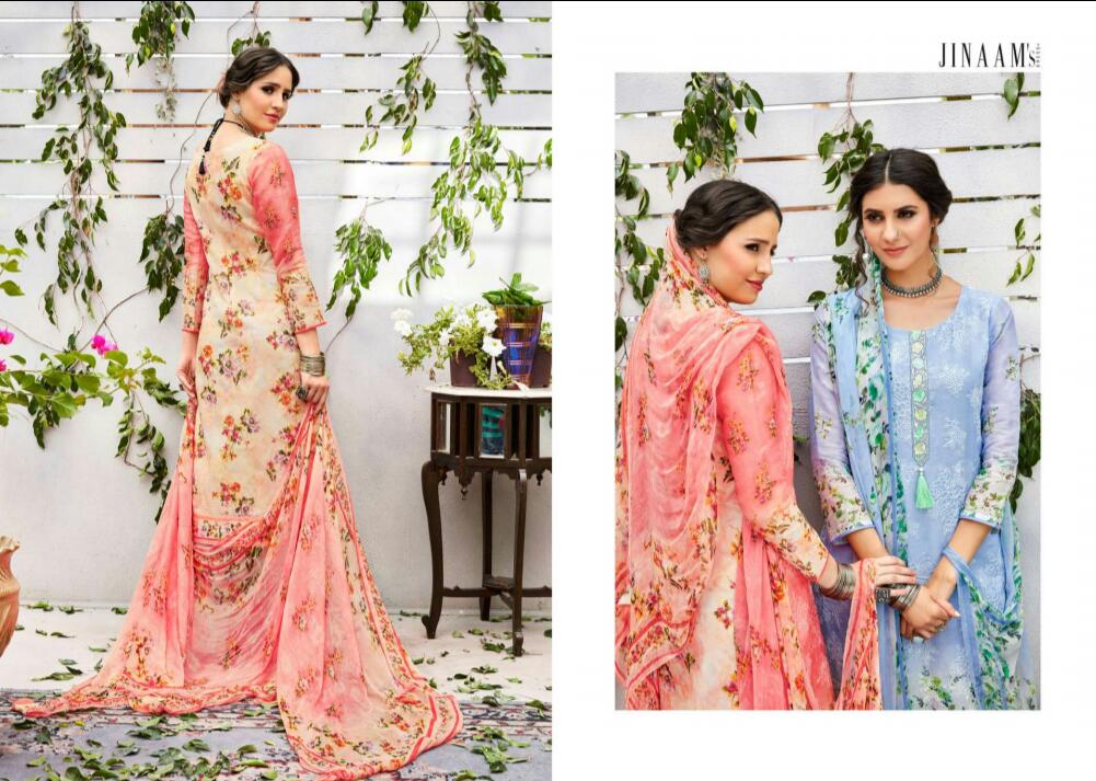 GOOD MORNING JDPL SURAT *(INDIA)* presents *Catalog Name:* *JinaamÂ?s Elisia collection* Cost Â? INR 15,750/-for 9 pieces Avg Cost Â? INR 1,750/- *Fabric Details:-* *Top* its Digital Printed cotton satin ( *cheaks chain stitch*) emb work collar placket *Bottom* is Cambric Cotton, *Dupatta* is Digital Printed *bembar chiffon dupatta* *5% GST applicable* Explore Spring summer wear Newly Launched in our *jinaam's Elisia collection.* |