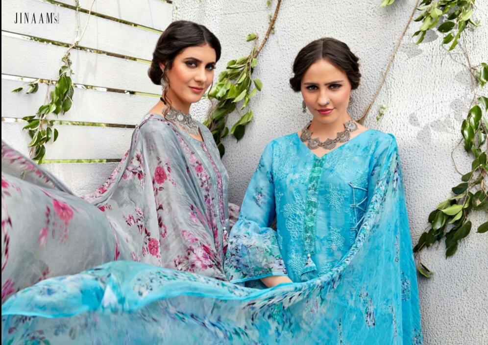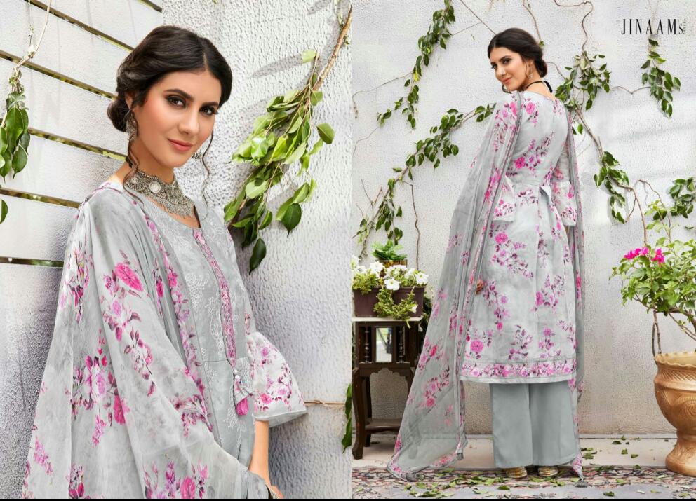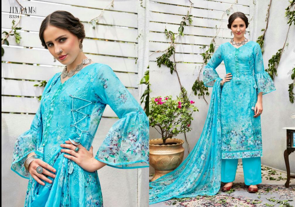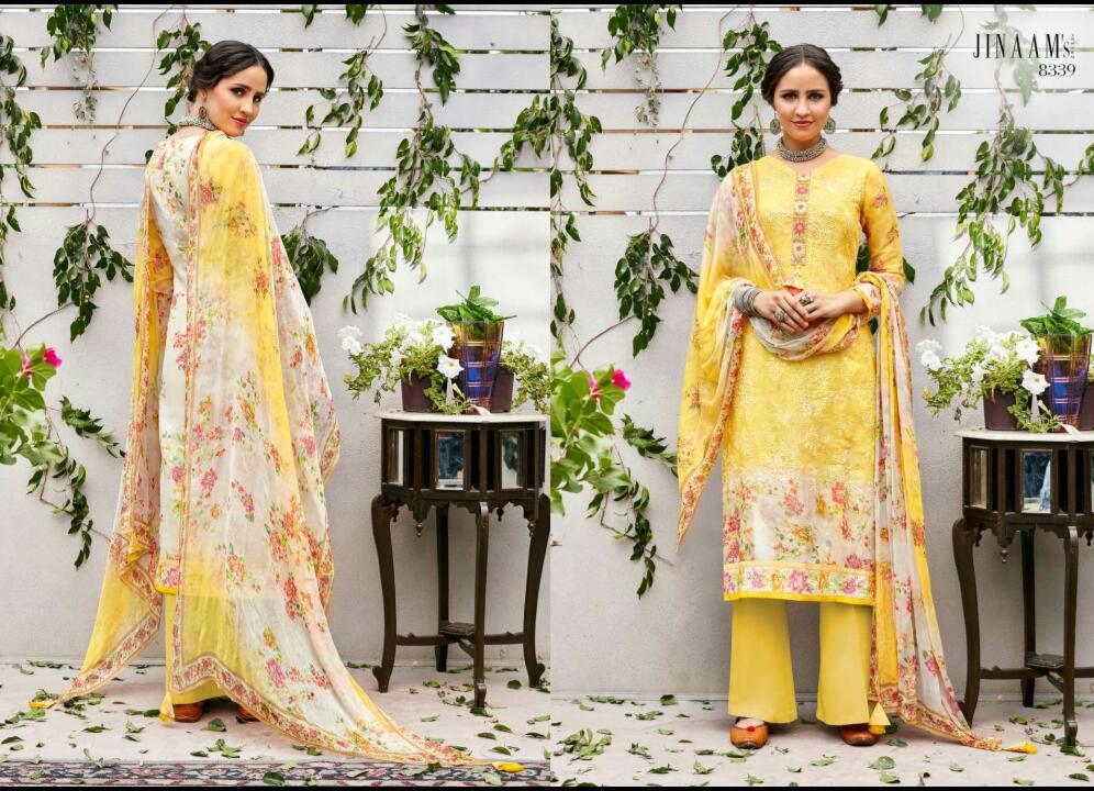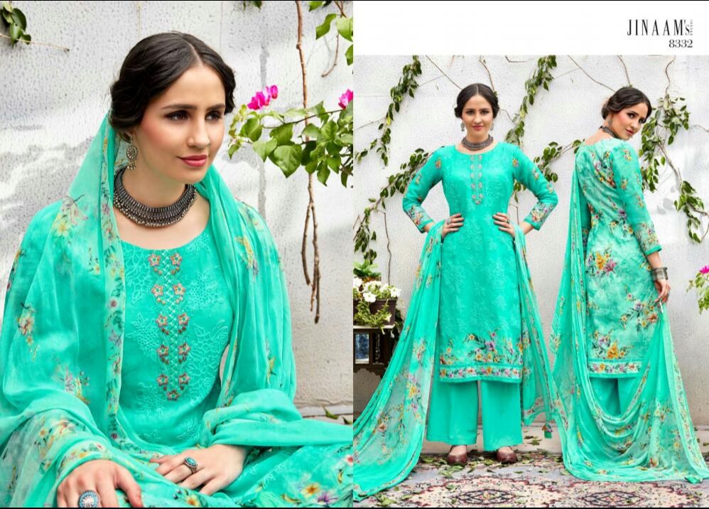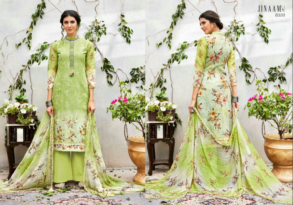 GOOD MORNING JDPL SURAT *(INDIA)* presents *Catalog Name:* *JinaamÂ?s Elisia collection* Cost Â? INR 15,750/-for 9 pieces Avg Cost Â? INR 1,750/- *Fabric Details:-* *Top* its Digital Printed cotton satin ( *cheaks chain stitch*) emb work collar placket *Bottom* is Cambric Cotton, *Dupatta* is Digital Printed *bembar chiffon dupatta* *5% GST applicable* Explore Spring summer wear Newly Launched in our *jinaam's Elisia collection.* |