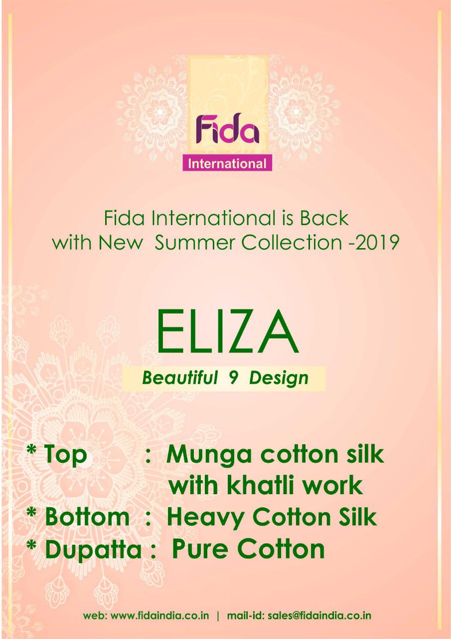 Buy Online Eliza By Fida International Cotton Silk Khatli Work Suits Wholesale Supplier Nd Dealer Gujarat 9 Pcs of Full Catalogue at Wholesale Price. Looking for Eliza By Fida International Cotton Silk Khatli Work Suits Wholesale Supplier Nd Dealer Gujarat Full Catalouge at Best Price? Buy Now Eliza By Fida International Cotton Silk Khatli Work Suits Wholesale Supplier Nd Dealer Gujarat at Wholesale Rate of Rs 13455 with Total 9 Pcs from authroized dealer and supplier of Brand. Cost of Each piece is just only Rs 1495 which is very low and affordable price to resale the product in your retail store ,This is Surat based Wholesale Supplier & Dealer of Brand. Click on Brand name to Know more about Brand's products.Call or Whatsapp on 9898838984 for booking or enquiry