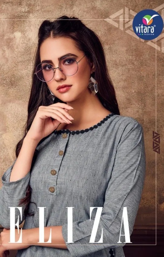 ? *vitara fashion launches exclusive designer kurti* ? ?Catalogue name- *ELIZA* ?Fabric- *imp.cotton fabrics* ?Size Â? *M -38 ,L-40,XL-42,xxl-44* ?Designs- *4* ?Rate:- *415/-* *GST +5% Delivery March 25, 2020 |