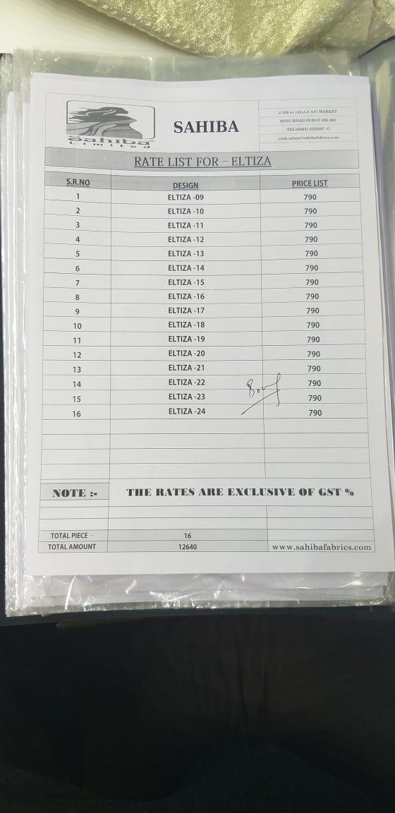 Buy Online Eltiza By Sahiba Fancy Designer Printed Sarees Wholesale Supplier Nd Dealer Trader Nitya Nx Gujarat 16 Pcs of Full Catalogue at Wholesale Price. Looking for Eltiza By Sahiba Fancy Designer Printed Sarees Wholesale Supplier Nd Dealer Trader Nitya Nx Gujarat Full Catalouge at Best Price? Buy Now Eltiza By Sahiba Fancy Designer Printed Sarees Wholesale Supplier Nd Dealer Trader Nitya Nx Gujarat at Wholesale Rate of Rs 12640 with Total 16 Pcs from authroized dealer and supplier of SAHIBA Brand. Cost of Each piece is just only Rs 790 which is very low and affordable price to resale the product in your retail store ,This is Surat based Wholesale Supplier & Dealer of SAHIBA Brand. Click on Brand name to Know more about SAHIBA Brand's products.Call or Whatsapp on 9898838984 for booking or enquiry