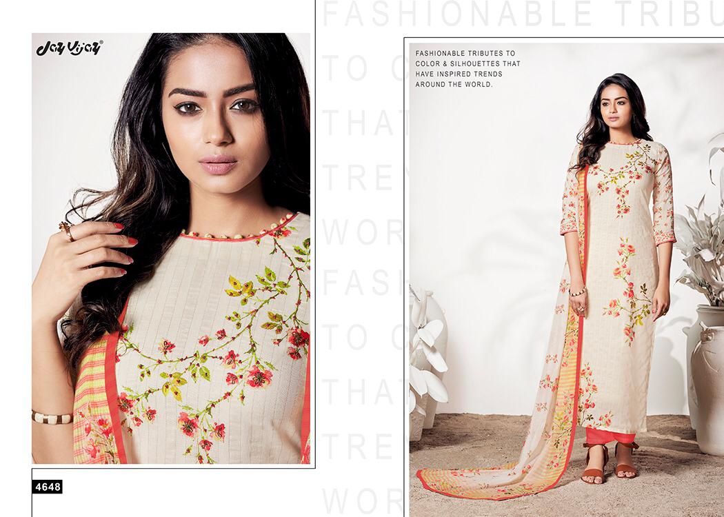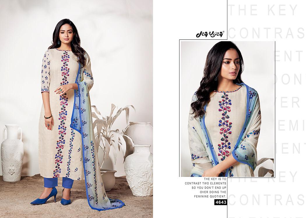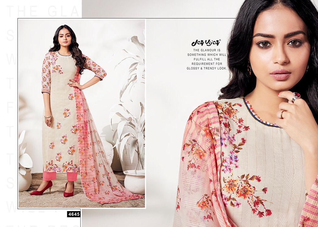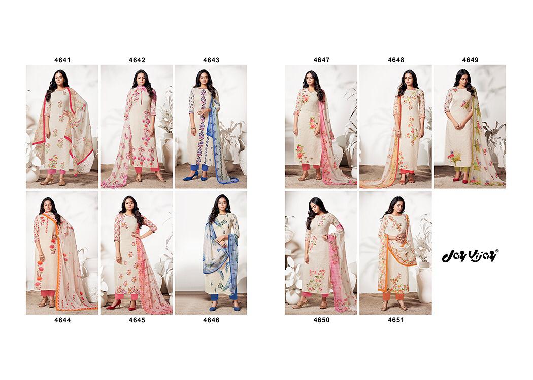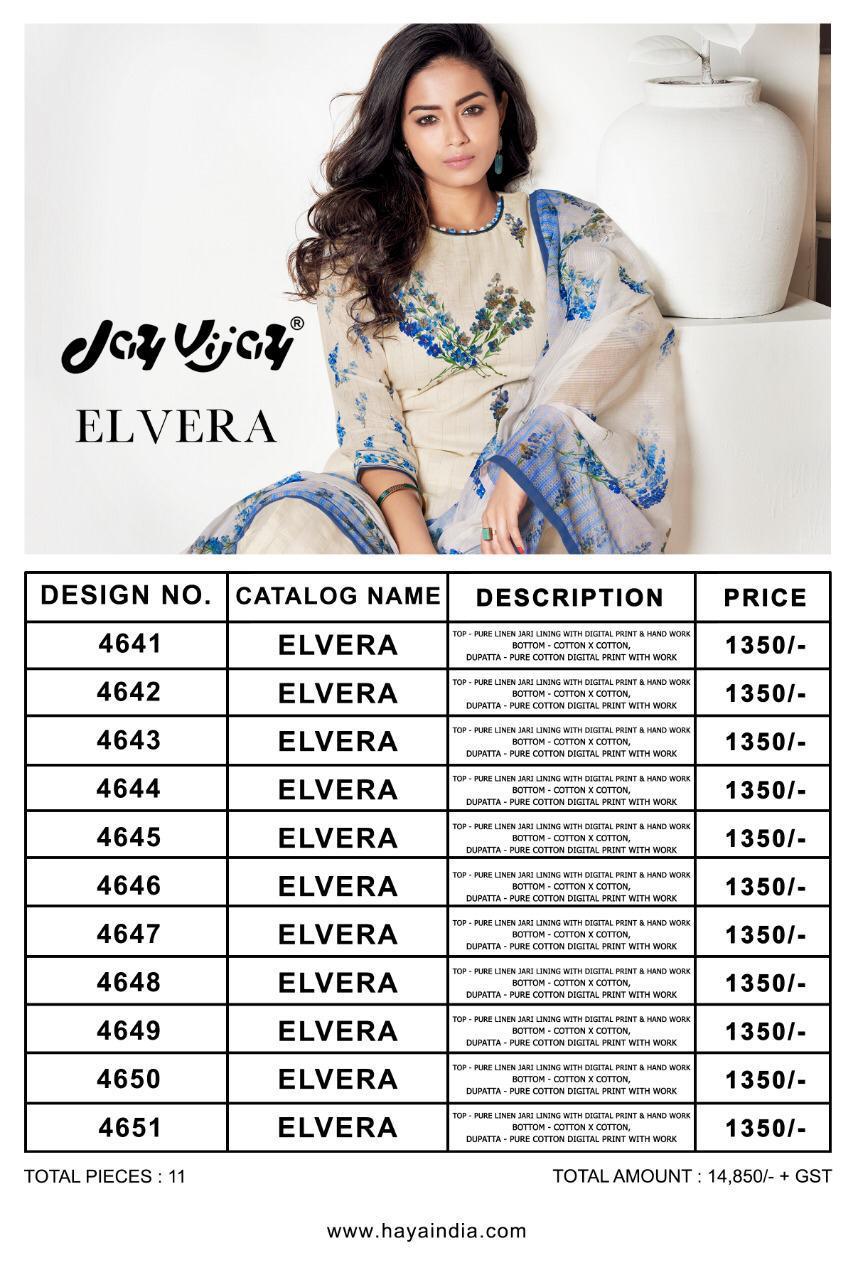 Buy Online Elvera By Jay Vijay Vijay Series 4641 To 4651 Linen Designer Party Wear Suits Wholesale Supplier Gujarat 11 Pcs of Full Catalogue at Wholesale Price. Looking for Elvera By Jay Vijay Vijay Series 4641 To 4651 Linen Designer Party Wear Suits Wholesale Supplier Gujarat Full Catalouge at Best Price? Buy Now Elvera By Jay Vijay Vijay Series 4641 To 4651 Linen Designer Party Wear Suits Wholesale Supplier Gujarat at Wholesale Rate of Rs 14850 with Total 11 Pcs from authroized dealer and supplier of JAY VIJAY Brand. Cost of Each piece is just only Rs 1350 which is very low and affordable price to resale the product in your retail store ,This is Surat based Wholesale Supplier & Dealer of JAY VIJAY Brand. Click on Brand name to Know more about JAY VIJAY Brand's products.Call or Whatsapp on 9898838984 for booking or enquiry