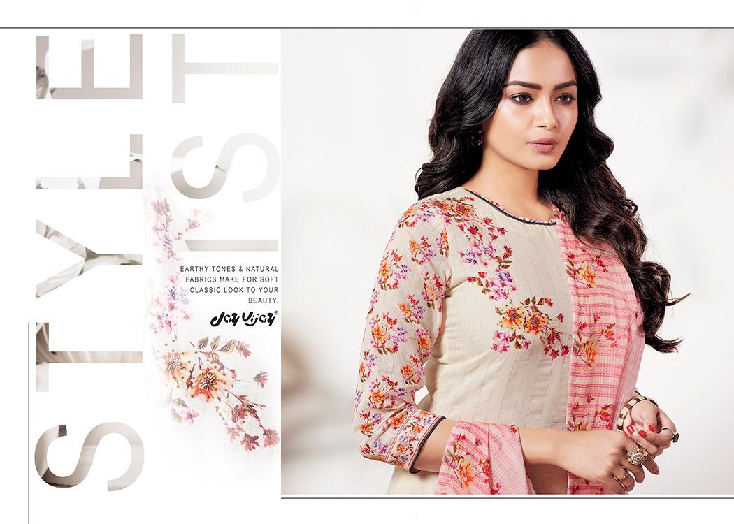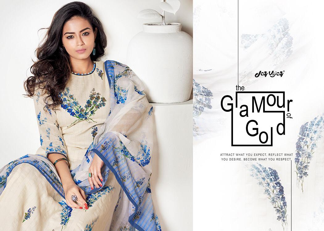 Brand - Jay Vijya . Catlog name - ELVERA . 11 Designs Singal Colour Fabric Details Top = Pure Linen Jari Lining With Digital Print & Hand Work Bottom = Cotton Ã? Cotton Dupatta = Pure Cotton Digital Print With Work Total pieces = 11 Rate = 1350/- Set To Set . GST 5 Percent Extra Delivery 5-6 days |