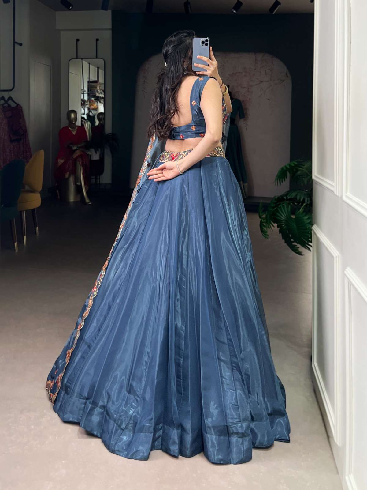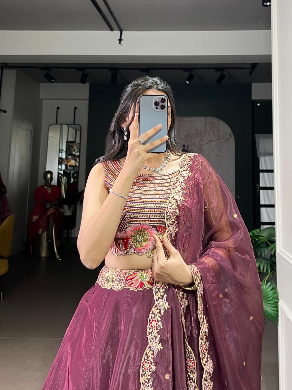 *Lehenga (Stitched)* Lehenga Fabric : Chanda Silk Lehenga Work : Plain With Sequins and Thread Embroidery Work Belt Lehenga Waist : SUPPORTED UP TO 42 Lehenga Closer : Drawstring With Zip Stitching : Stitched With Cancan And Canvas Length : 42 Flair : 5 Meter Inner : Micro Crepe (Double Inner)