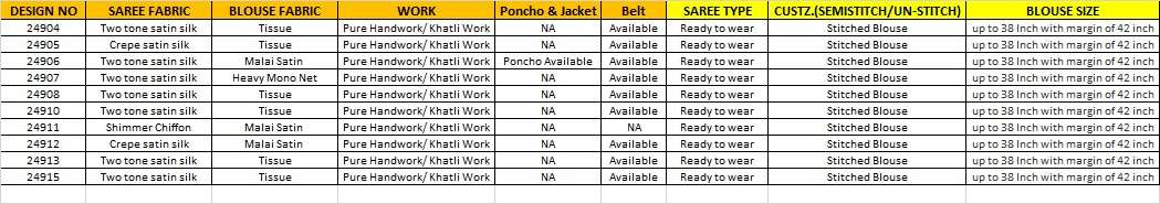 *PRICE :-* *24904-4175/-* *24905-4135/-* *24906-3045/-* *24907-4195/-* *24908-3845/-* *24910-3675/-* *24911-4205/-* *24912-3575/-* *24913-3855/-* *24915-3455/-* +*5% GST EXTRA*