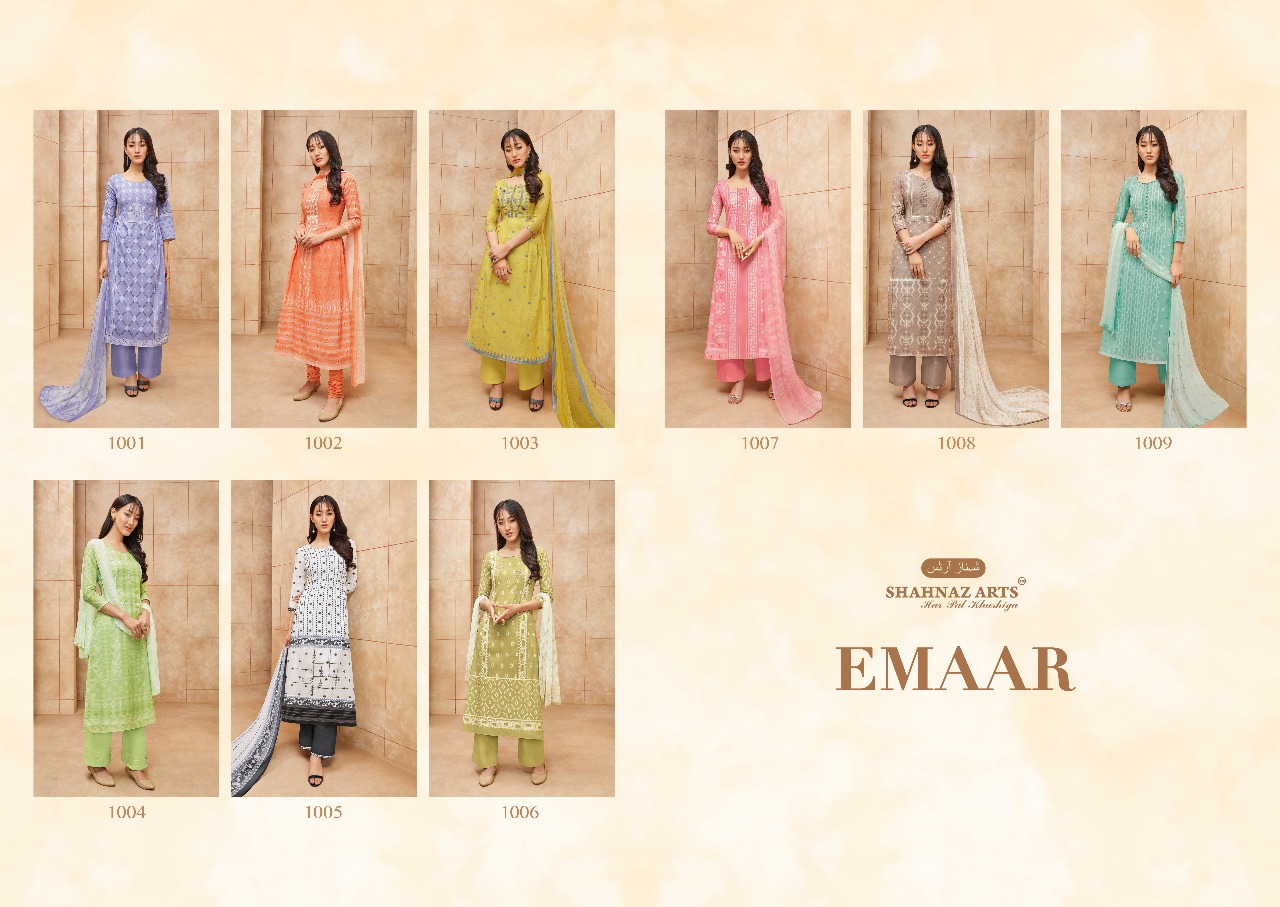 Buy Online Emaar By Shahnaz Art Cambric Cotton With Khatli Work Suits Wholesale Supplier And Dealer Nitya Nx India 9 Pcs of Full Catalogue at Wholesale Price. Looking for Emaar By Shahnaz Art Cambric Cotton With Khatli Work Suits Wholesale Supplier And Dealer Nitya Nx India Full Catalouge at Best Price? Buy Now Emaar By Shahnaz Art Cambric Cotton With Khatli Work Suits Wholesale Supplier And Dealer Nitya Nx India at Wholesale Rate of Rs 5355 with Total 9 Pcs from authroized dealer and supplier of SHAHNAZ ARTS Brand. Cost of Each piece is just only Rs 595 which is very low and affordable price to resale the product in your retail store ,This is Surat based Wholesale Supplier & Dealer of SHAHNAZ ARTS Brand. Click on Brand name to Know more about SHAHNAZ ARTS Brand's products.Call or Whatsapp on 9898838984 for booking or enquiry