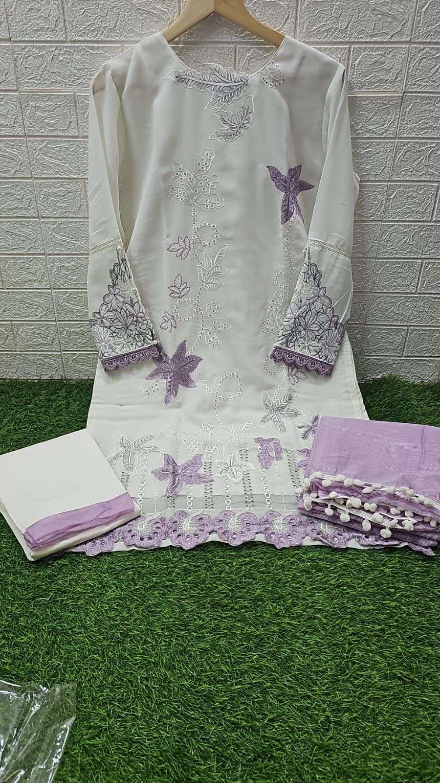 ❤️ *Details*❤️ 〰〰〰〰〰〰〰 ✨ *Top*:- Pure Fox ✨ *inner*:- santoon ✨ *Bottom* :- Pure Cotton Stretchable ✨ *Duppta*:- Fancy Fabrics ✨ *Colour* (1) *Off White With Purple* (2) *Off White With Choco* ‼️ *Size Chart *‼️ ✨ *Top XL:-XL size chest* (42) *And XXL:-XXL size chest* (44) ✨*Rate *1350/-*✨