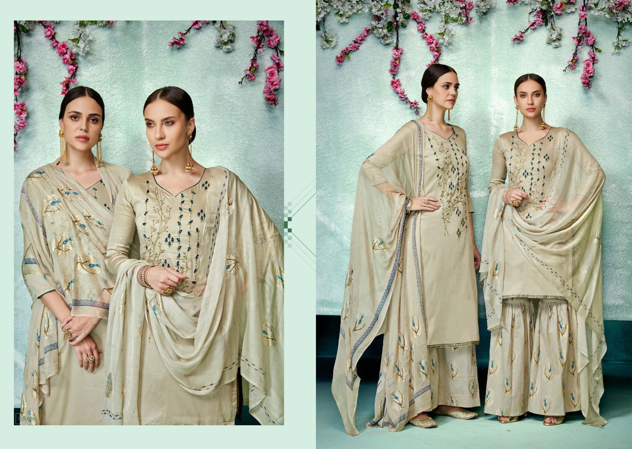 SARGAM PRINTS Presents ***EMILIA*** *?Fabric Details?* *Top:* PURE ZAM WITH DESIGNER WORK Bottom :PURE COTTON FOIL PRINT *Dupatta:* PURE BEMBERG WITH FOIL PRINT(BOX) *Designs:* 8 PCS *Rate:* ?1095 per pcs Set To Set . GST 5 Percent Extra. Delivery 2-3 days *HSN CODE:* 5407 |