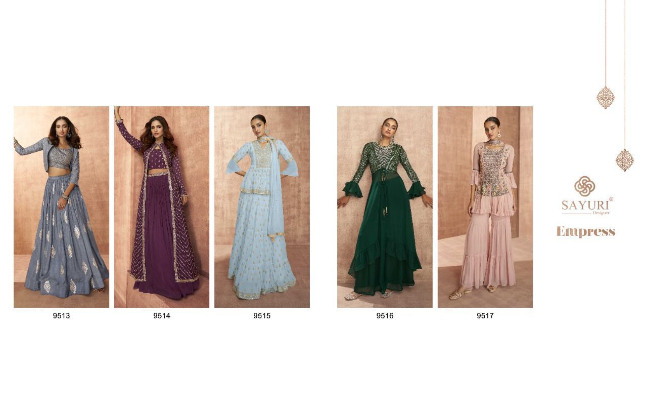 Buy Online Empress By Sayuri Designer Georgette Suit Wholesale Supplier Traders In Surat 5 Pcs of Full Catalogue at Wholesale Price. Looking for Empress By Sayuri Designer Georgette Suit Wholesale Supplier Traders In Surat Full Catalouge at Best Price? Buy Now Empress By Sayuri Designer Georgette Suit Wholesale Supplier Traders In Surat at Wholesale Rate of Rs 10495 with Total 5 Pcs from authroized dealer and supplier of Brand. Cost of Each piece is just only Rs 2099 which is very low and affordable price to resale the product in your retail store ,This is Surat based Wholesale Supplier & Dealer of Brand. Click on Brand name to Know more about Brand's products.Call or Whatsapp on 9898838984 for booking or enquiry