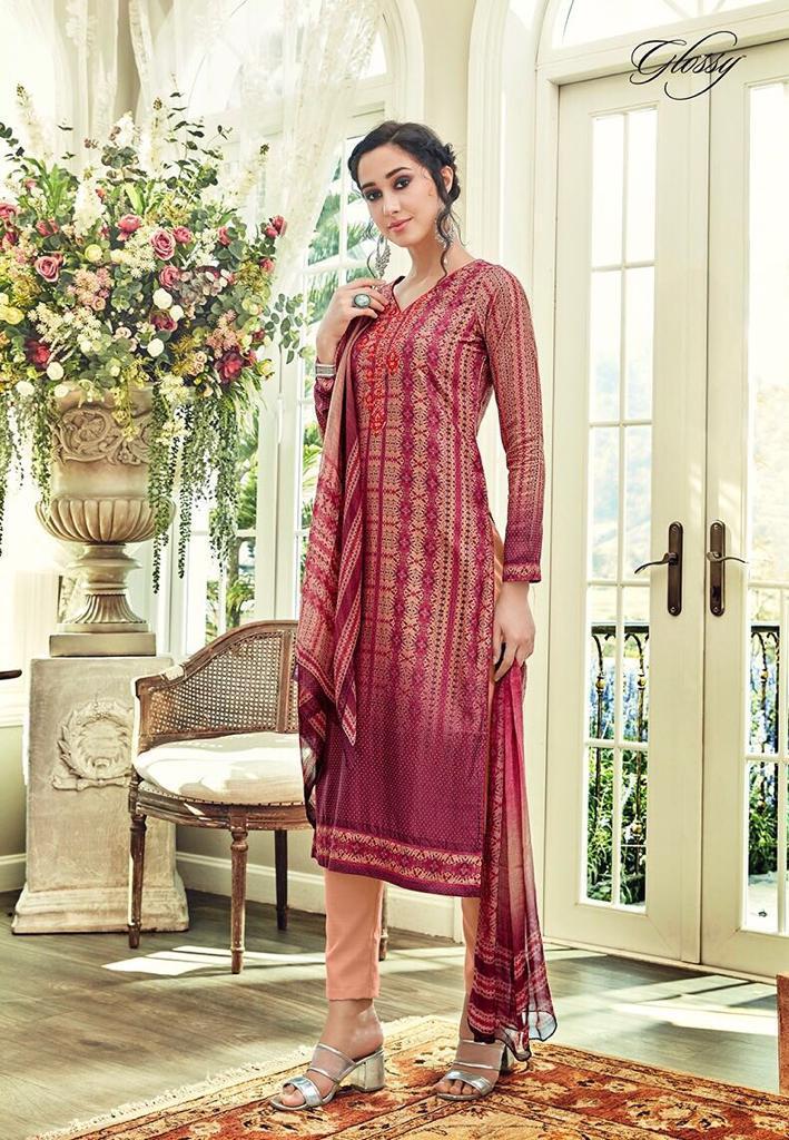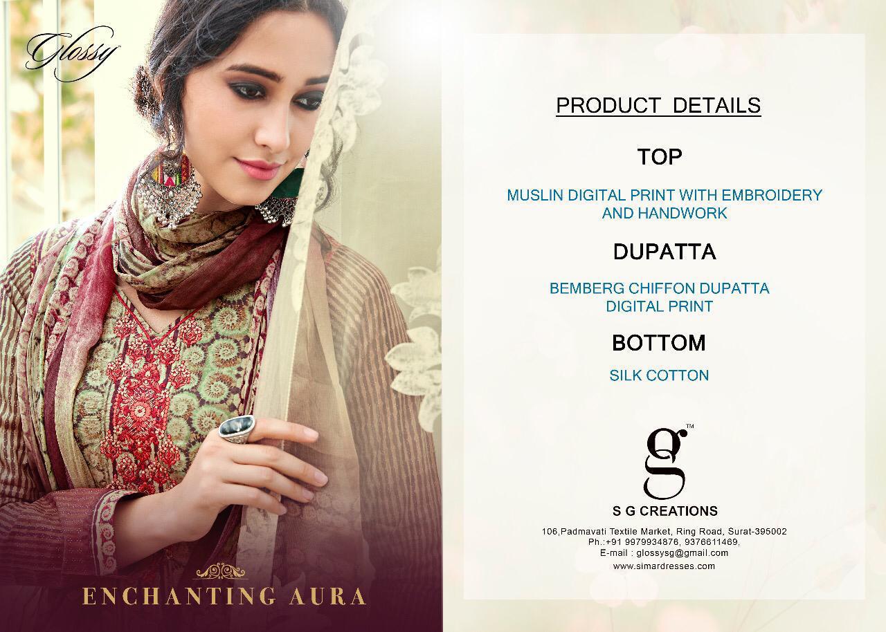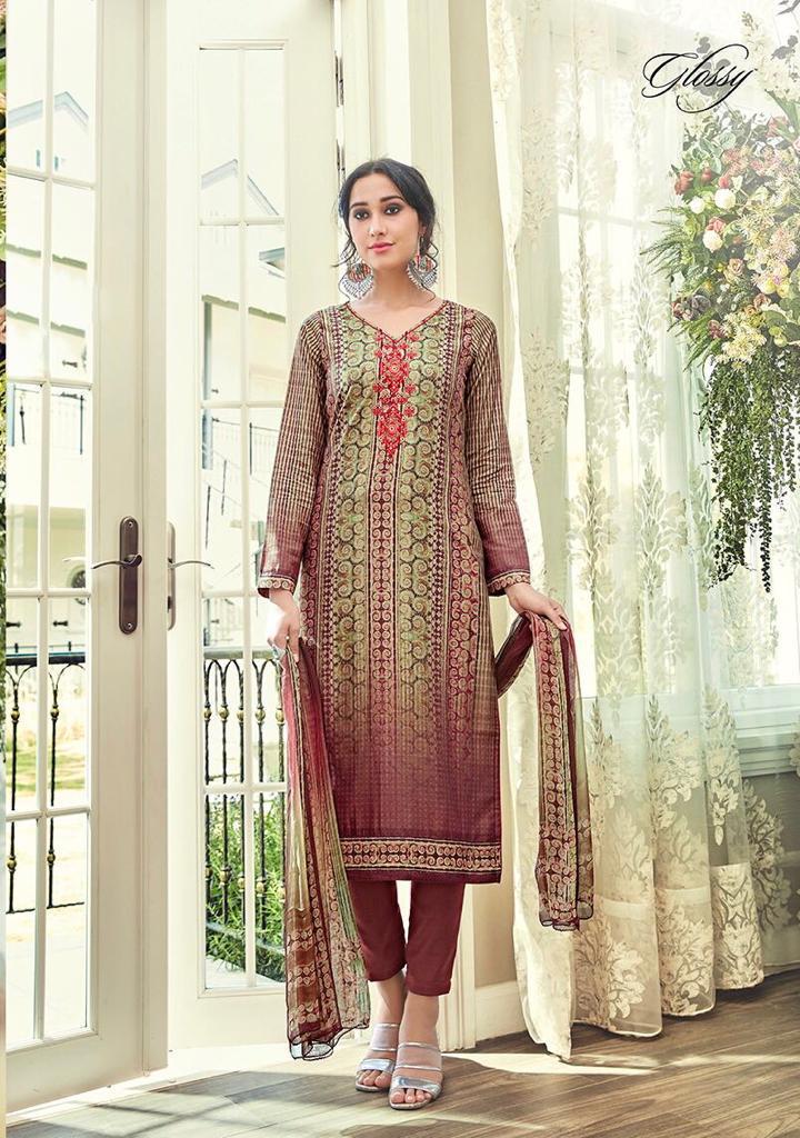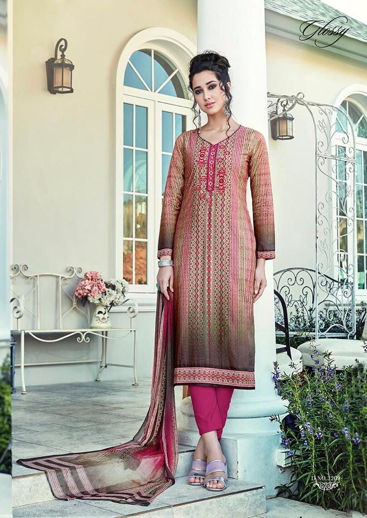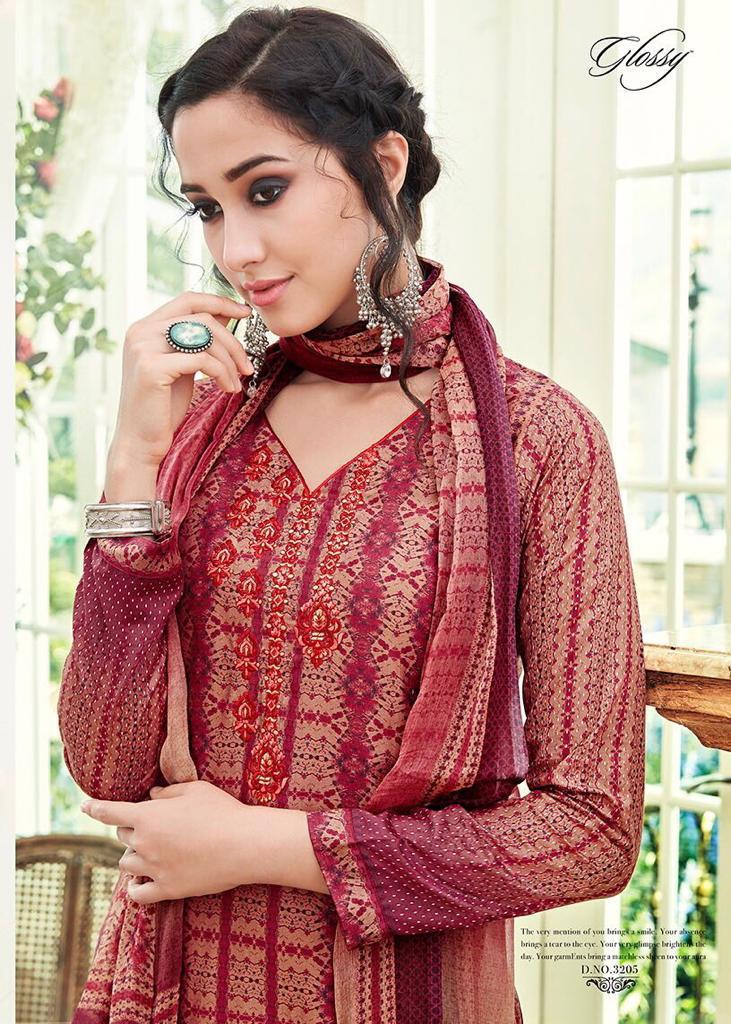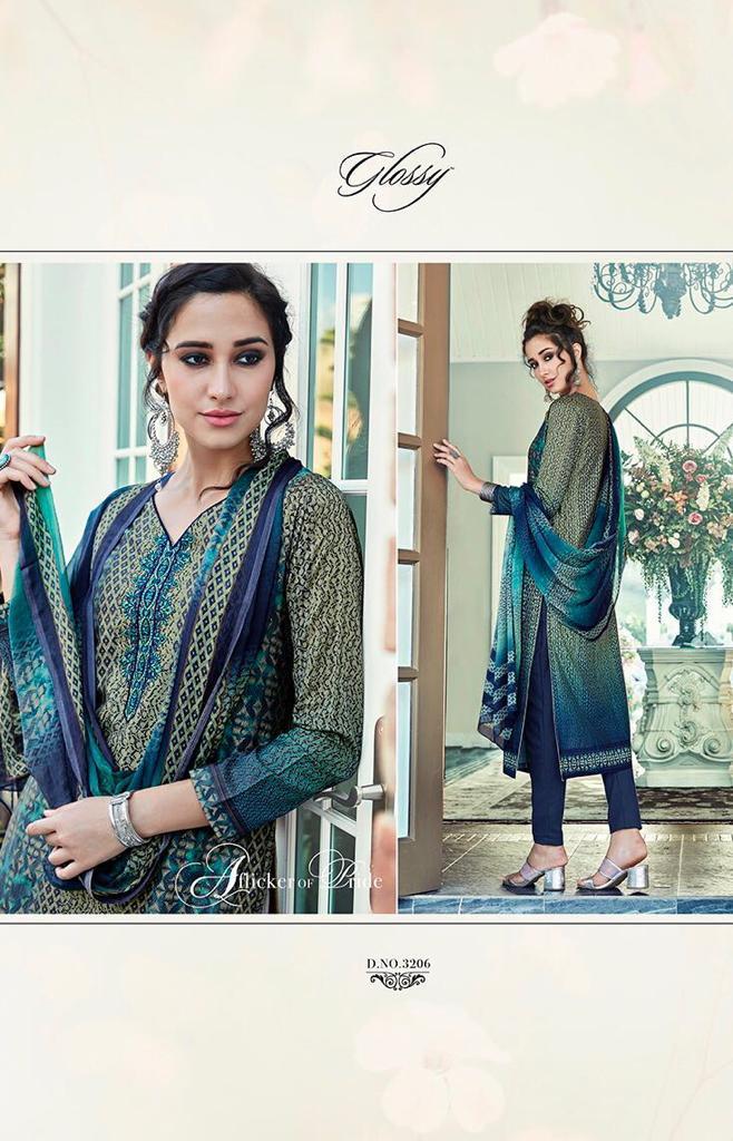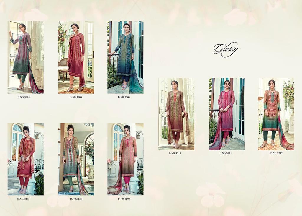 Buy Online Enchanting Aure By Glossy 3204 Series Fancy Muslin Digital Printed Salwar Kameez Wholesaler Surat 9 Pcs of Full Catalogue at Wholesale Price. Looking for Enchanting Aure By Glossy 3204 Series Fancy Muslin Digital Printed Salwar Kameez Wholesaler Surat Full Catalouge at Best Price? Buy Now Enchanting Aure By Glossy 3204 Series Fancy Muslin Digital Printed Salwar Kameez Wholesaler Surat at Wholesale Rate of Rs 9855 with Total 9 Pcs from authroized dealer and supplier of GLOSSY Brand. Cost of Each piece is just only Rs 1095 which is very low and affordable price to resale the product in your retail store ,This is Surat based Wholesale Supplier & Dealer of GLOSSY Brand. Click on Brand name to Know more about GLOSSY Brand's products.Call or Whatsapp on 9898838984 for booking or enquiry