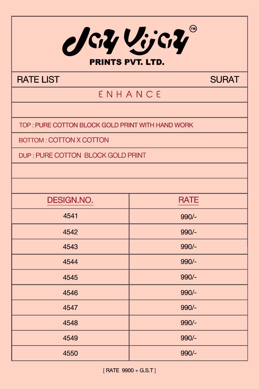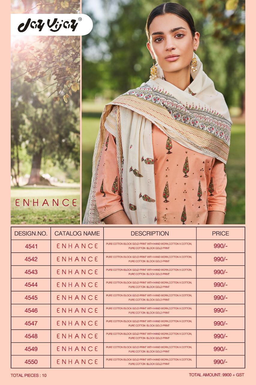 Buy Online Enhance By Jay Vijay Cotton Block Printed Suits Wholesale Supplier Gujarat 10 Pcs of Full Catalogue at Wholesale Price. Looking for Enhance By Jay Vijay Cotton Block Printed Suits Wholesale Supplier Gujarat Full Catalouge at Best Price? Buy Now Enhance By Jay Vijay Cotton Block Printed Suits Wholesale Supplier Gujarat at Wholesale Rate of Rs 9900 with Total 10 Pcs from authroized dealer and supplier of JAY VIJAY Brand. Cost of Each piece is just only Rs 990 which is very low and affordable price to resale the product in your retail store ,This is Surat based Wholesale Supplier & Dealer of JAY VIJAY Brand. Click on Brand name to Know more about JAY VIJAY Brand's products.Call or Whatsapp on 9898838984 for booking or enquiry