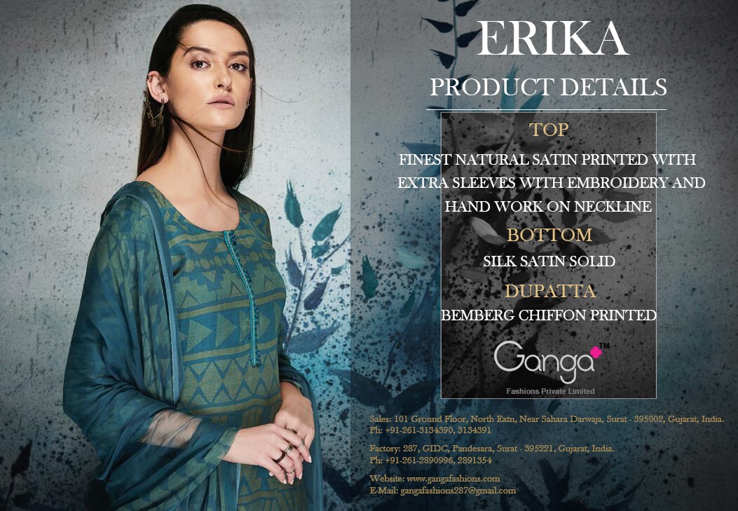 Buy Online Erika By Ganga 6449 Series Fancy Satin Printed Salwar Kameez Catlog Wholesale Dealer Surat 9 Pcs of Full Catalogue at Wholesale Price. Looking for Erika By Ganga 6449 Series Fancy Satin Printed Salwar Kameez Catlog Wholesale Dealer Surat Full Catalouge at Best Price? Buy Now Erika By Ganga 6449 Series Fancy Satin Printed Salwar Kameez Catlog Wholesale Dealer Surat at Wholesale Rate of Rs 13725 with Total 9 Pcs from authroized dealer and supplier of GANGA Brand. Cost of Each piece is just only Rs 1525 which is very low and affordable price to resale the product in your retail store ,This is Surat based Wholesale Supplier & Dealer of GANGA Brand. Click on Brand name to Know more about GANGA Brand's products.Call or Whatsapp on 9898838984 for booking or enquiry