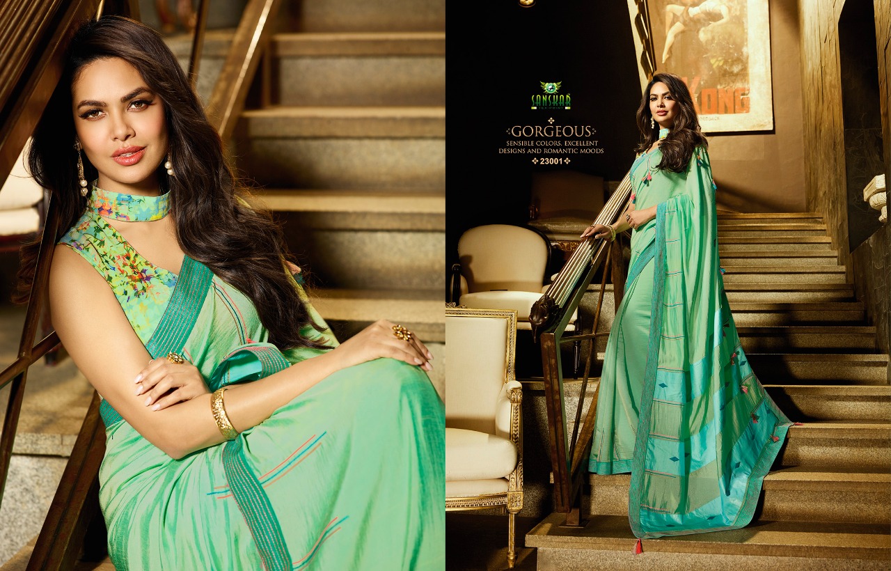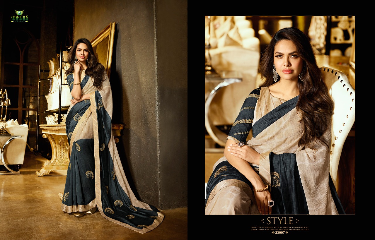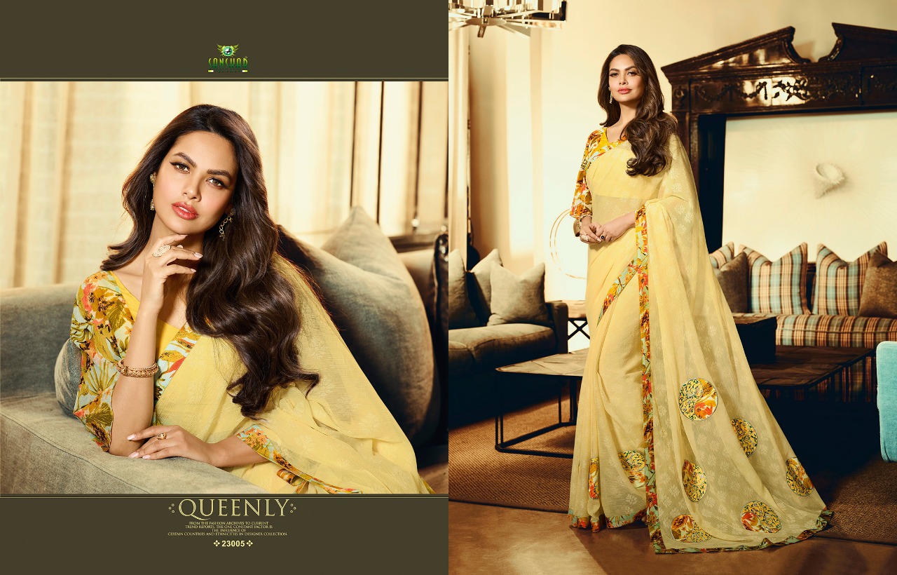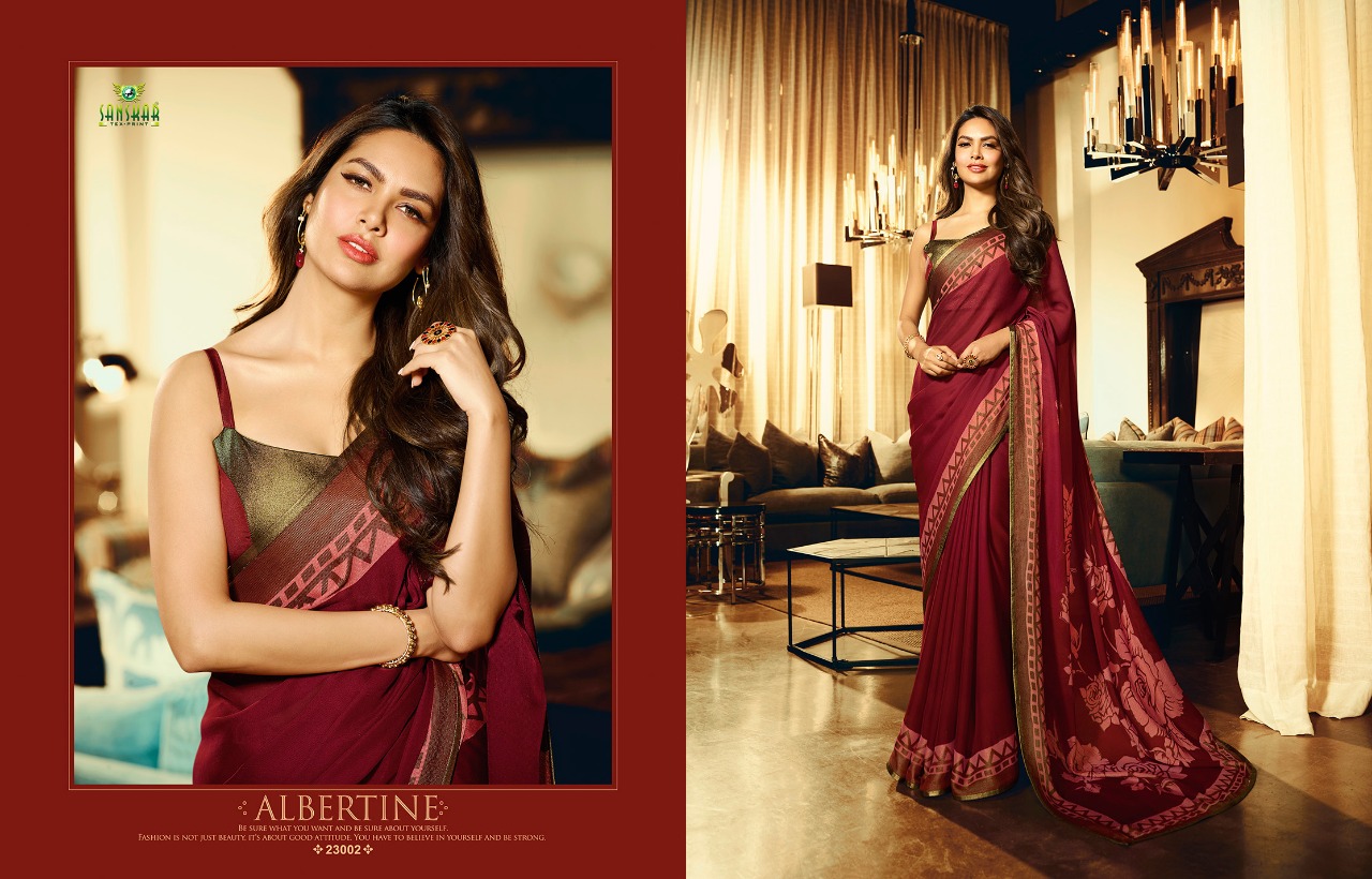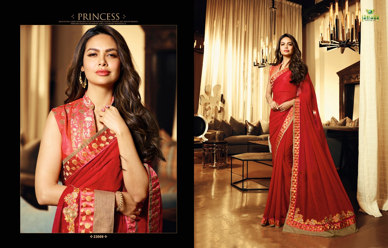 Esha Vol 1 By Sanskar Tex Prints Series 23001 To 23009 Designer Party Wear Sarees Wholesale Supplier And Dealer Surat
