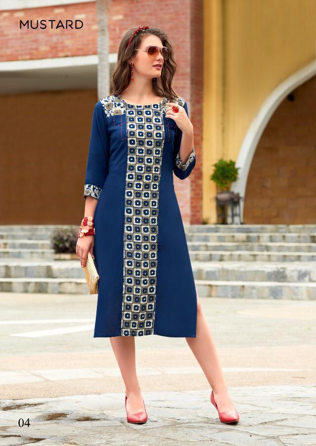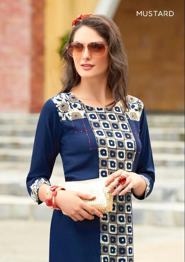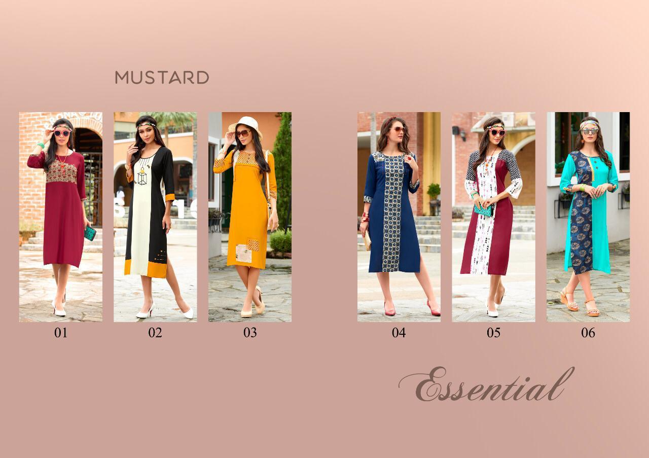Essential By Mustard 01 Series Fancy Reyon Kurti Catlog Wholesaler Surat