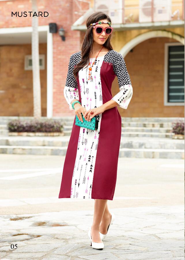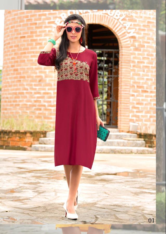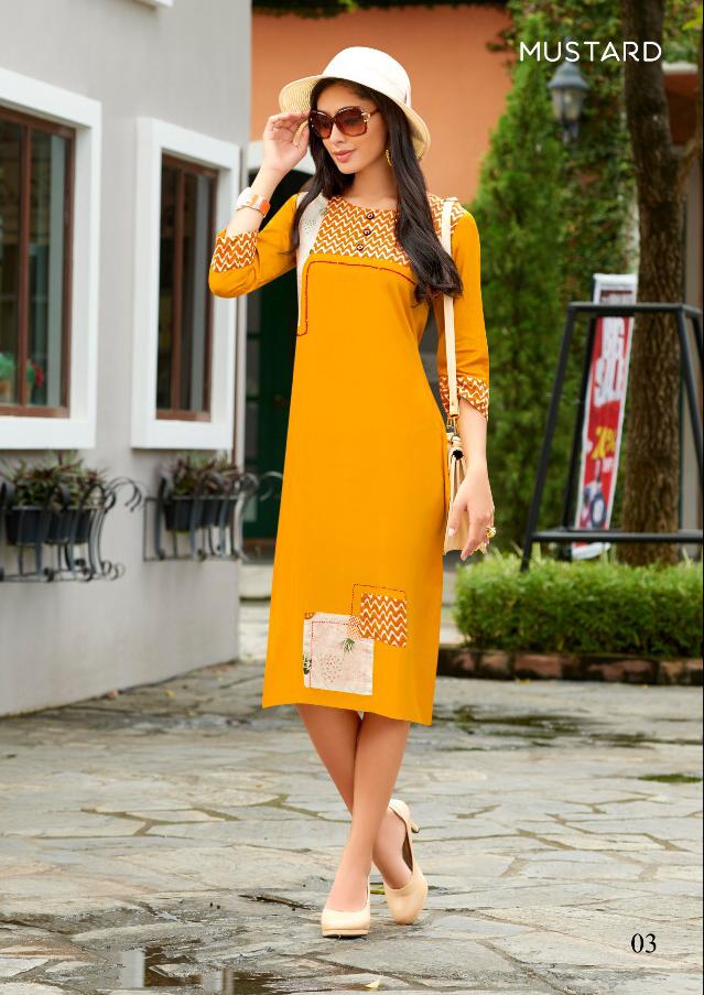 Essential By Mustard 01 Series Fancy Reyon Printed Kurti Catlog Wholesale Dealer Surat