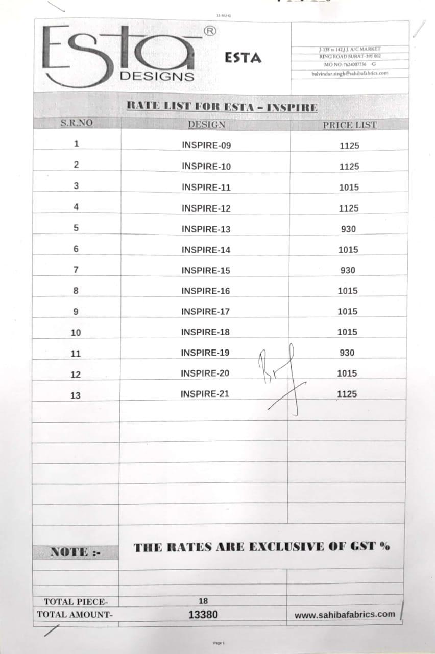*ESTA* Most selling Brand of _SAHIBA_ Presents its latest catalogue *INSPIRE* Georget and fancy fabric saree with work and foil print and fancy lace *AVERAGE PRICE-1029/-* 13 PIECEA IN ONE SET TOTAL AMOUNT-13380/- 5%Gst Applicable Set to set Box packing Delivery Running |