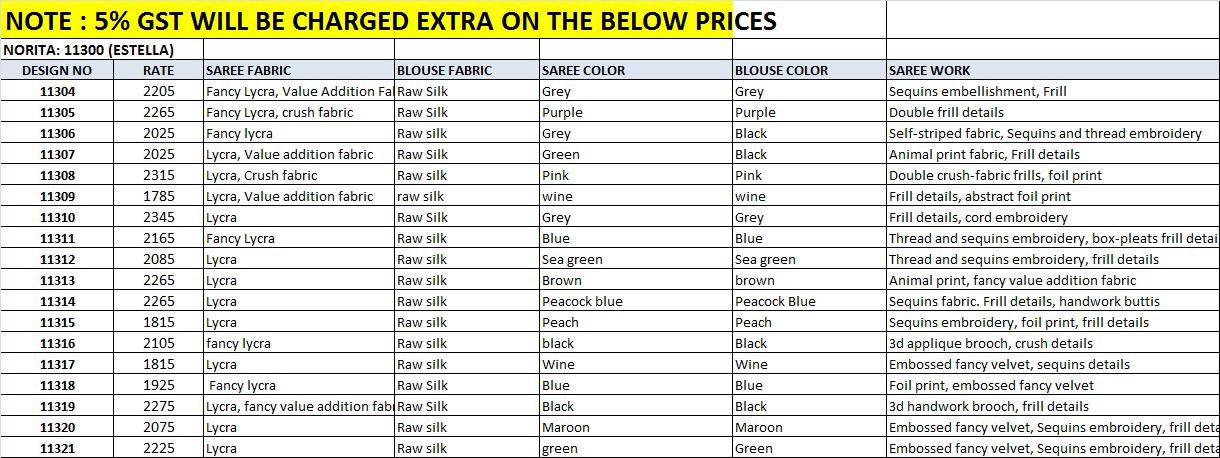 Brand - Mahotsav. Type - Saree. Catlog name - ESTELLA . * set & loose & Singel * Delivery- Running Series -11304 to 11321. |