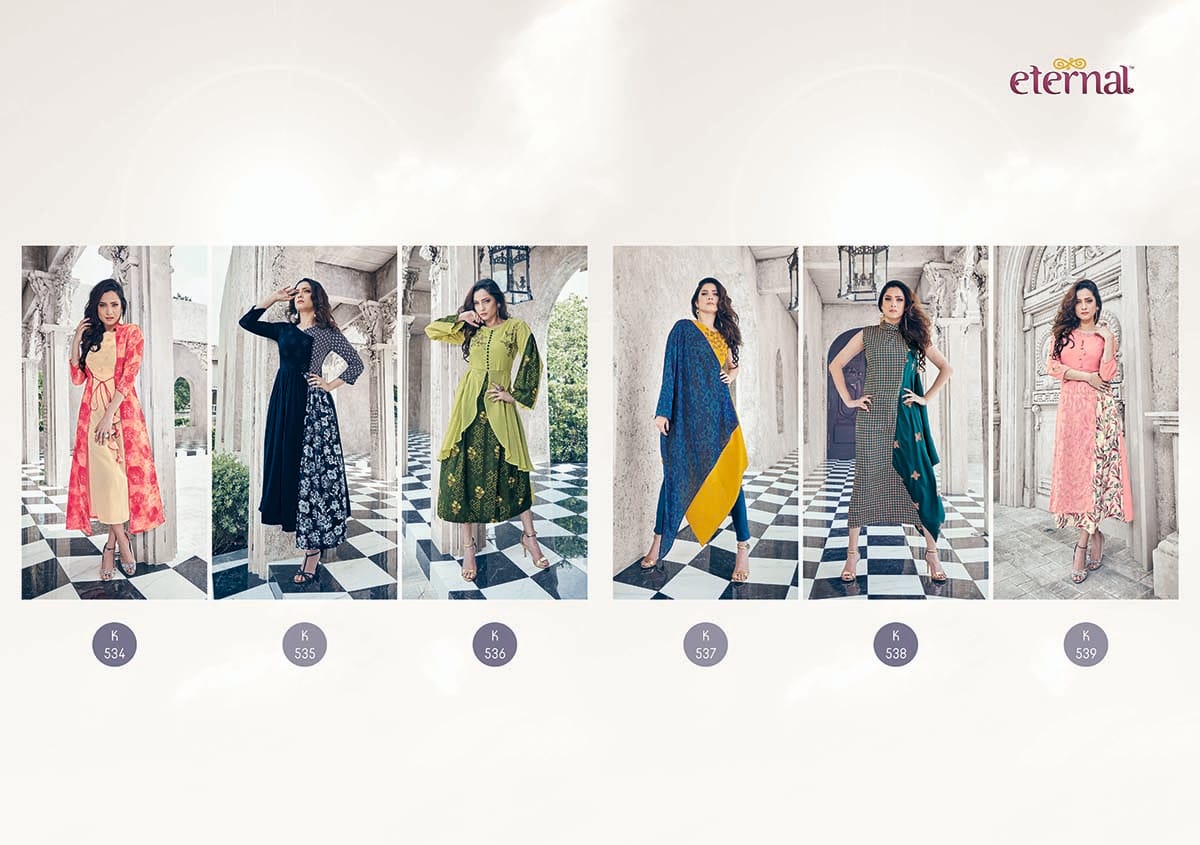 Buy Online Eternal Starlight Vol 3 K 535 Series Geroegette Kurti Catlog Wholesale Dealer And Supplier Surat 6 Pcs of Full Catalogue at Wholesale Price. Looking for Eternal Starlight Vol 3 K 535 Series Geroegette Kurti Catlog Wholesale Dealer And Supplier Surat Full Catalouge at Best Price? Buy Now Eternal Starlight Vol 3 K 535 Series Geroegette Kurti Catlog Wholesale Dealer And Supplier Surat at Wholesale Rate of Rs 4950 with Total 6 Pcs from authroized dealer and supplier of ETERNAL Brand. Cost of Each piece is just only Rs 825 which is very low and affordable price to resale the product in your retail store ,This is Surat based Wholesale Supplier & Dealer of ETERNAL Brand. Click on Brand name to Know more about ETERNAL Brand's products.Call or Whatsapp on 9898838984 for booking or enquiry