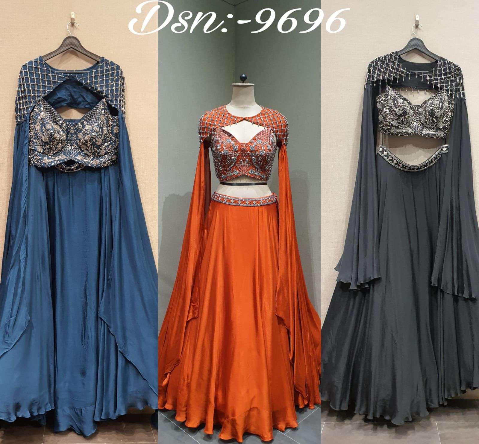 Skirt choli over chinon fabric with full Handwork and stylish pattern💫 4 colors available blue orange black lavender👌