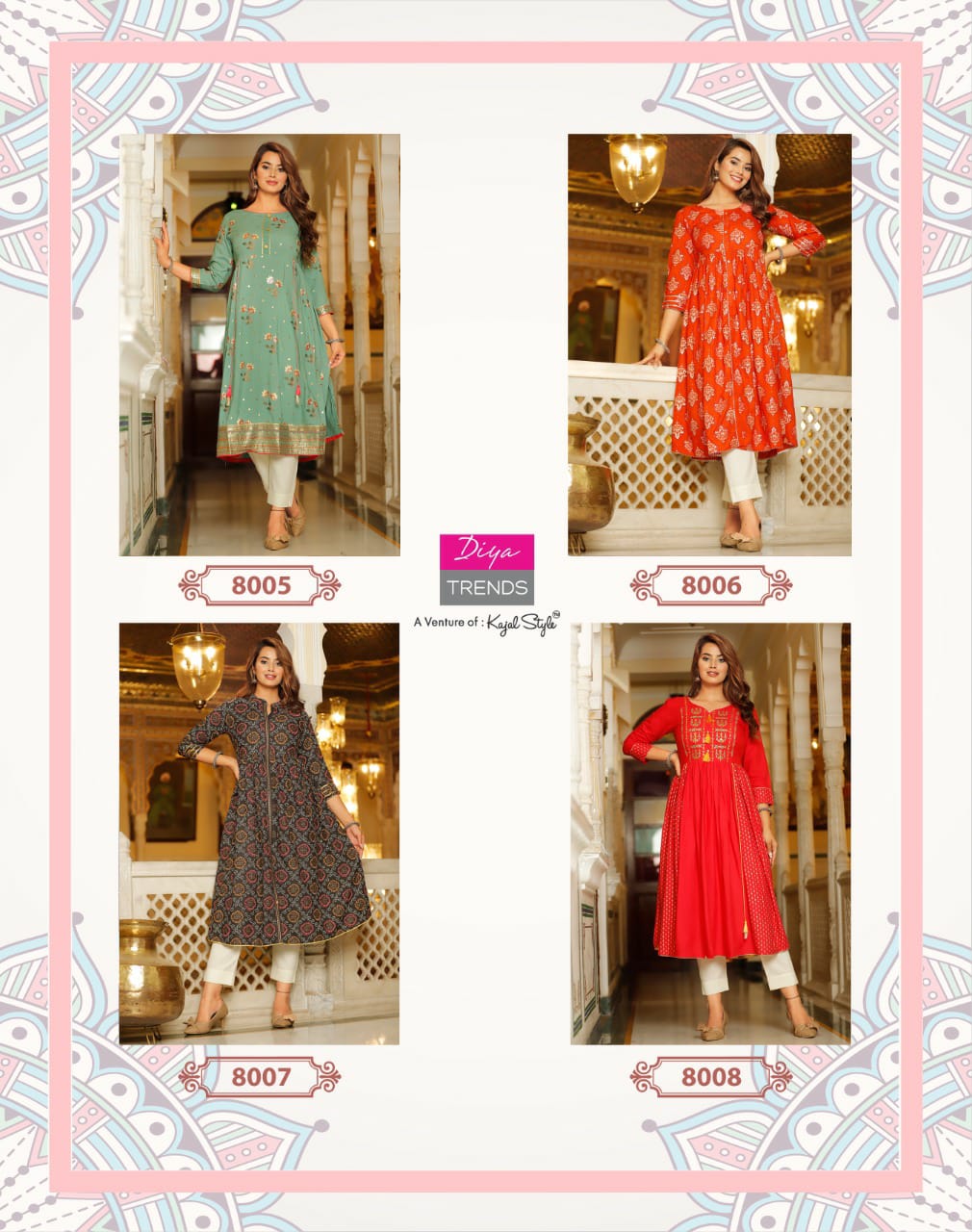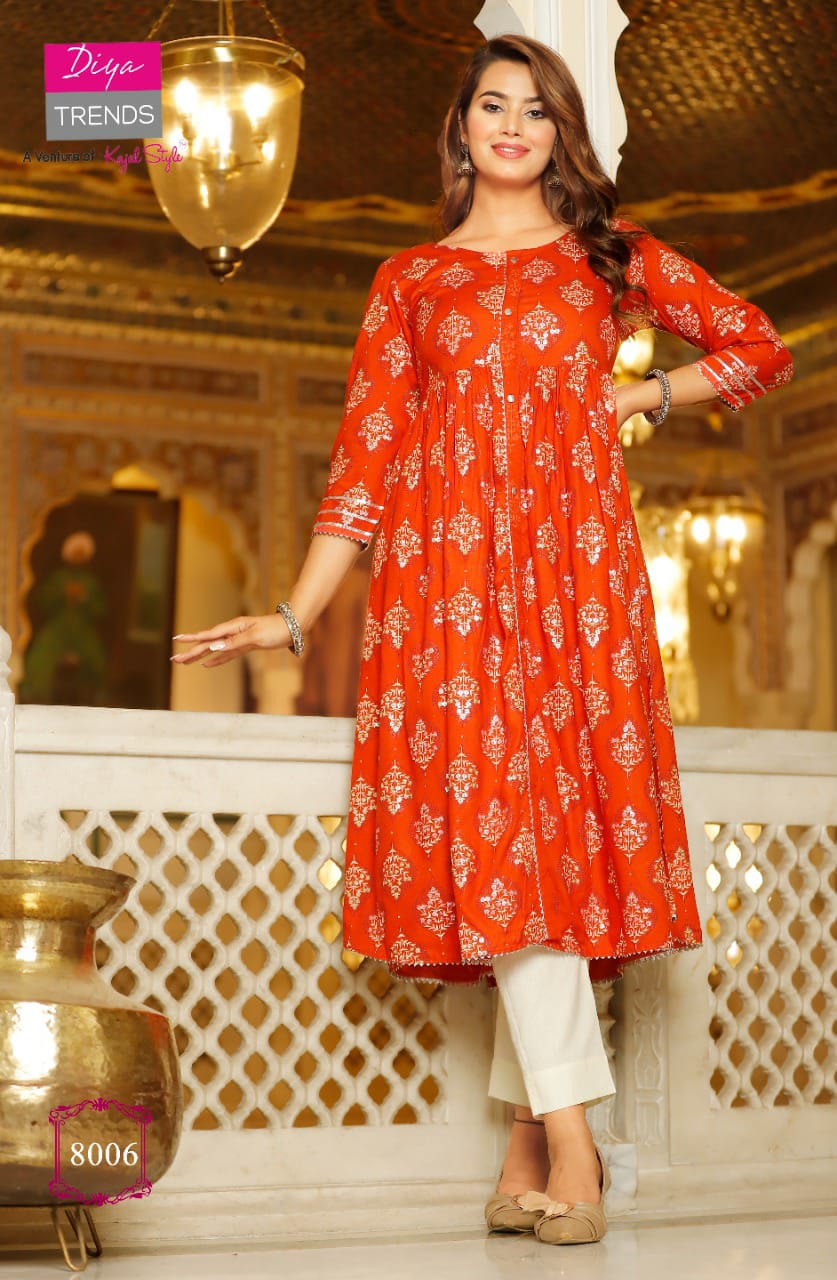 Buy Online Ethnicity Vol 8 By Diya Trends Wholesaler Suppliers And Dealer From India 8 Pcs of Full Catalogue at Wholesale Price. Looking for Ethnicity Vol 8 By Diya Trends Wholesaler Suppliers And Dealer From India Full Catalouge at Best Price? Buy Now Ethnicity Vol 8 By Diya Trends Wholesaler Suppliers And Dealer From India at Wholesale Rate of Rs 3560 with Total 8 Pcs from authroized dealer and supplier of Brand. Cost of Each piece is just only Rs 445 which is very low and affordable price to resale the product in your retail store ,This is Surat based Wholesale Supplier & Dealer of Brand. Click on Brand name to Know more about Brand's products.Call or Whatsapp on 9898838984 for booking or enquiry