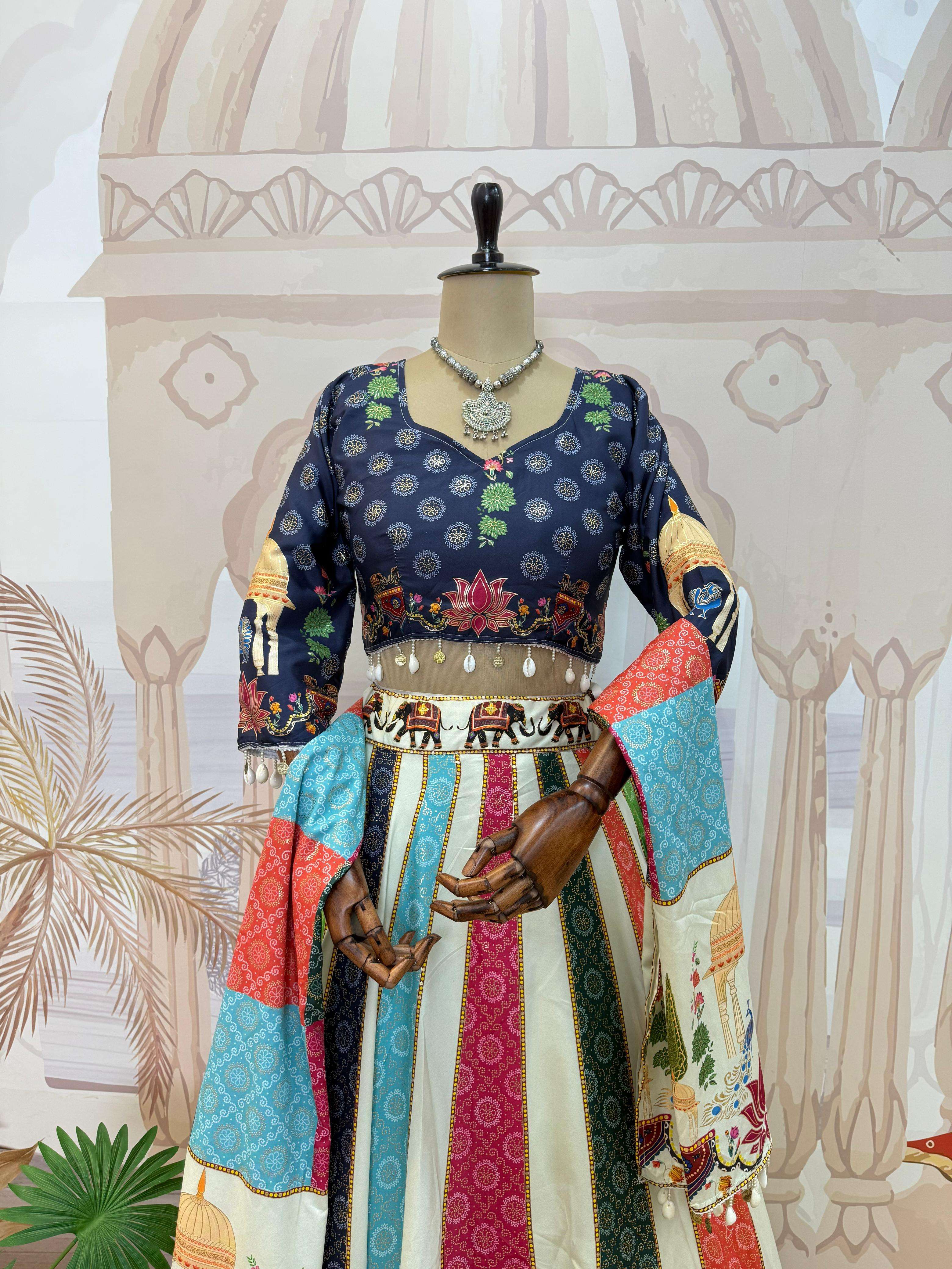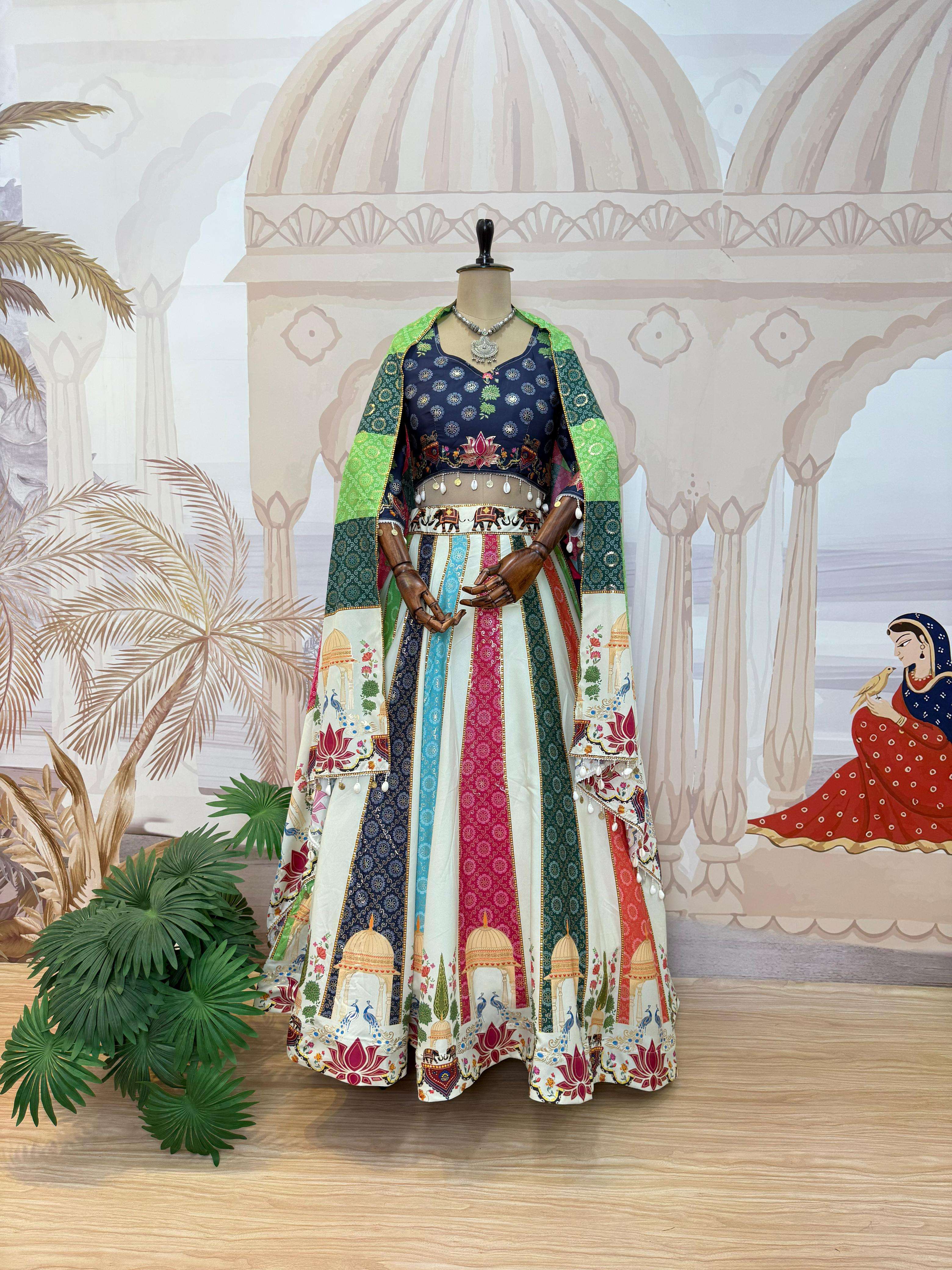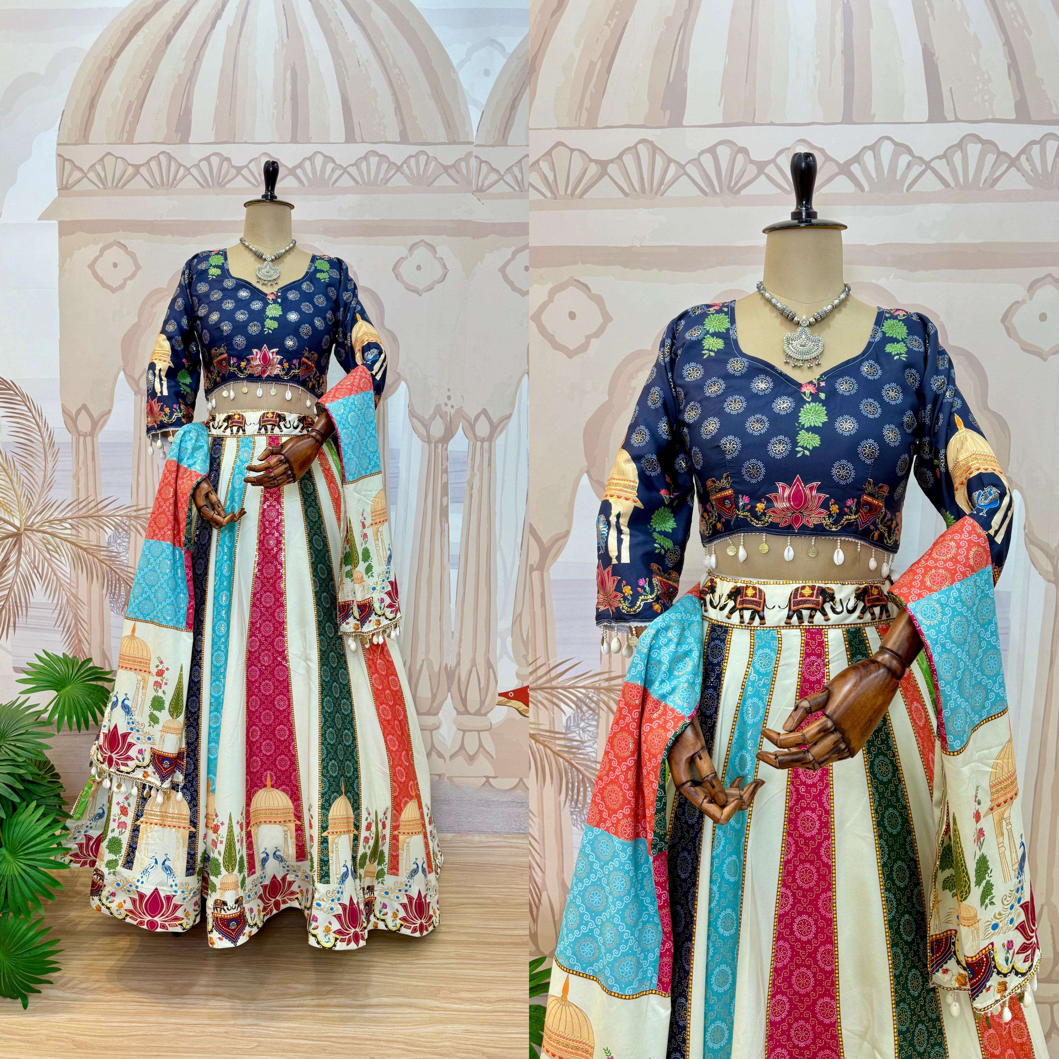 👉 *Lehenga Details* *Fabric:- FOIL PRINT ON CREPE SILK FABRIC* *Work :- CAN-CAN, CANVAS & DRAWSTRING WITH LATAKAN* *Flair :- 8 METER* *Height :- 42 Inch*