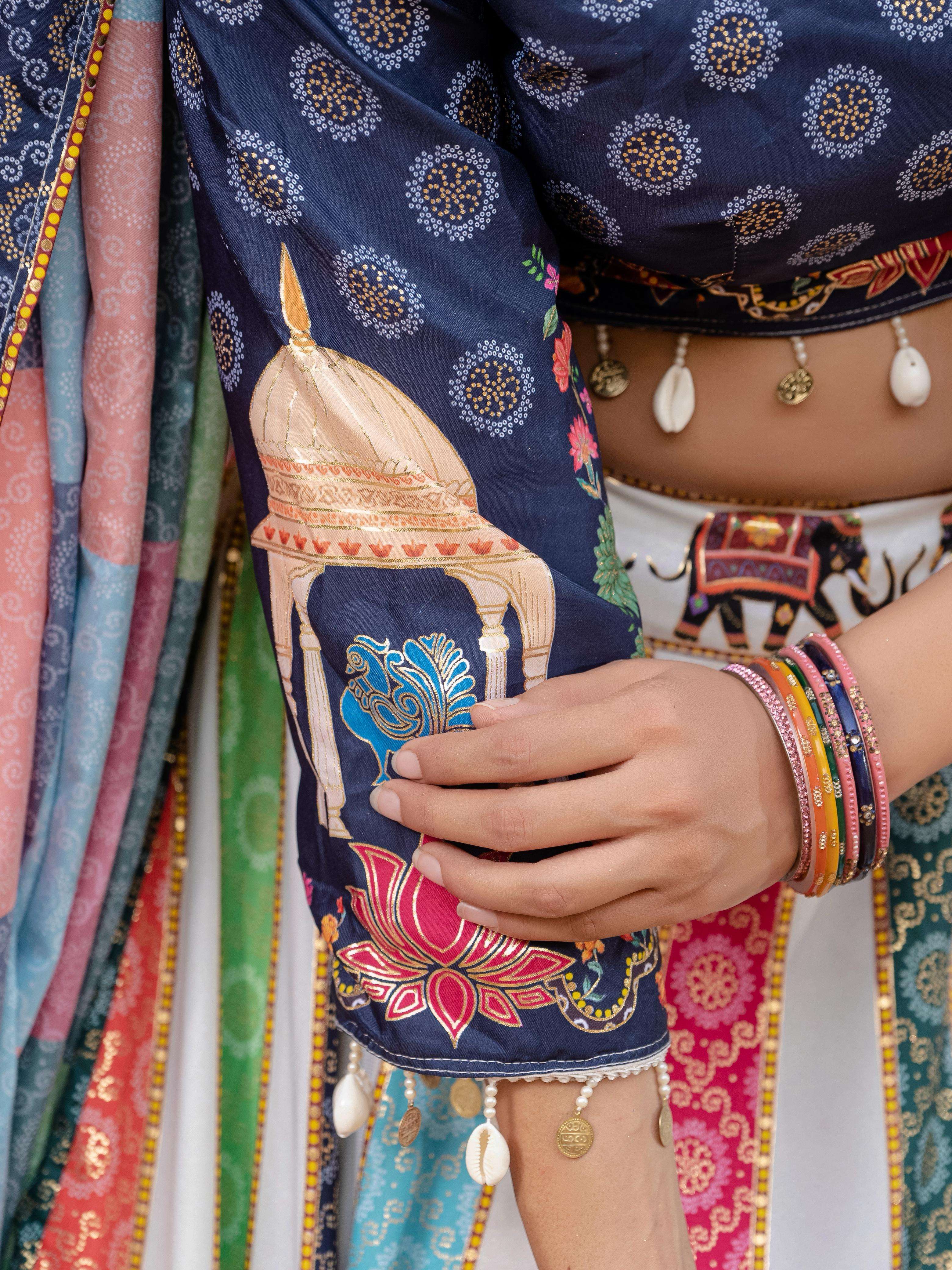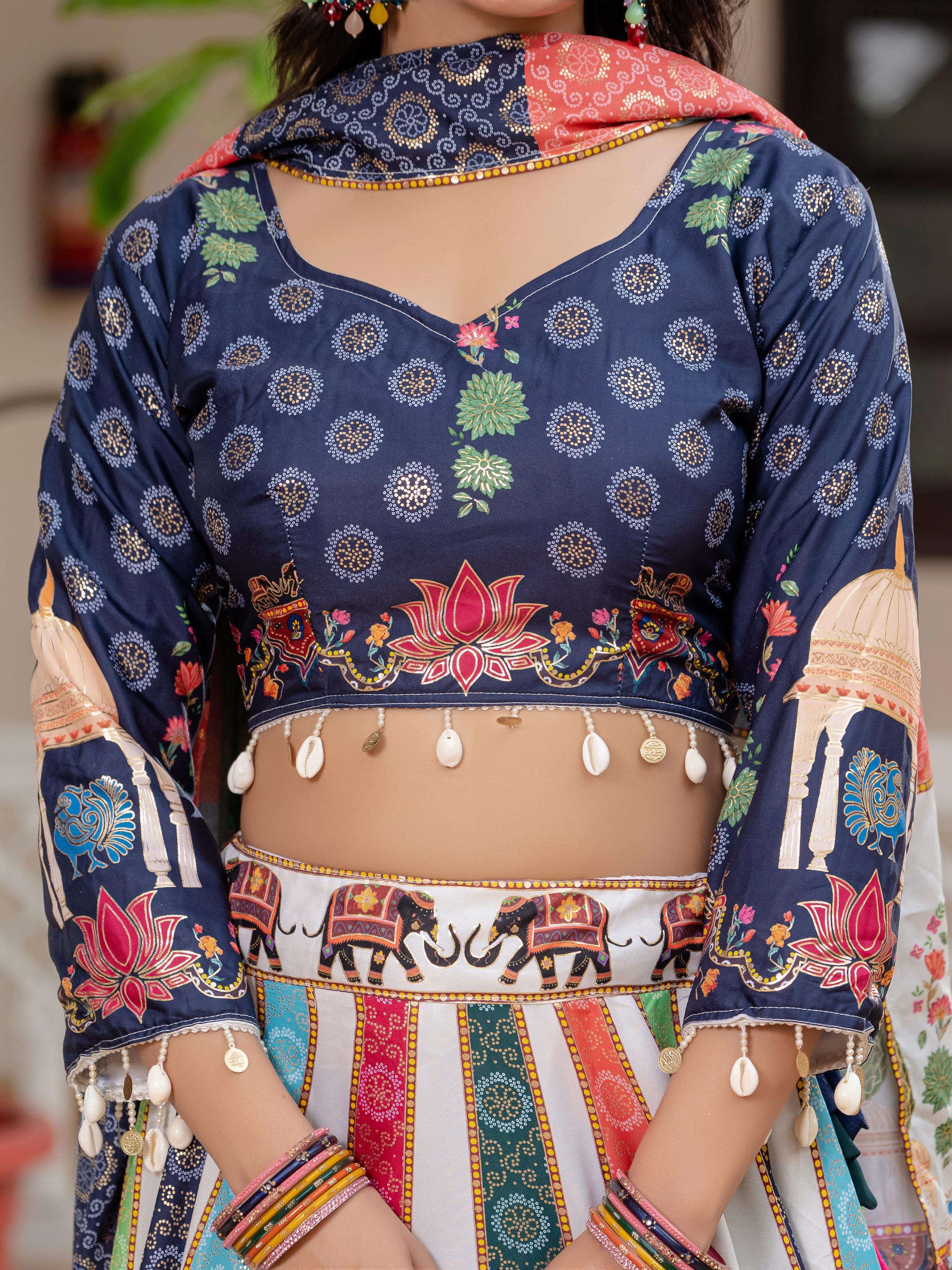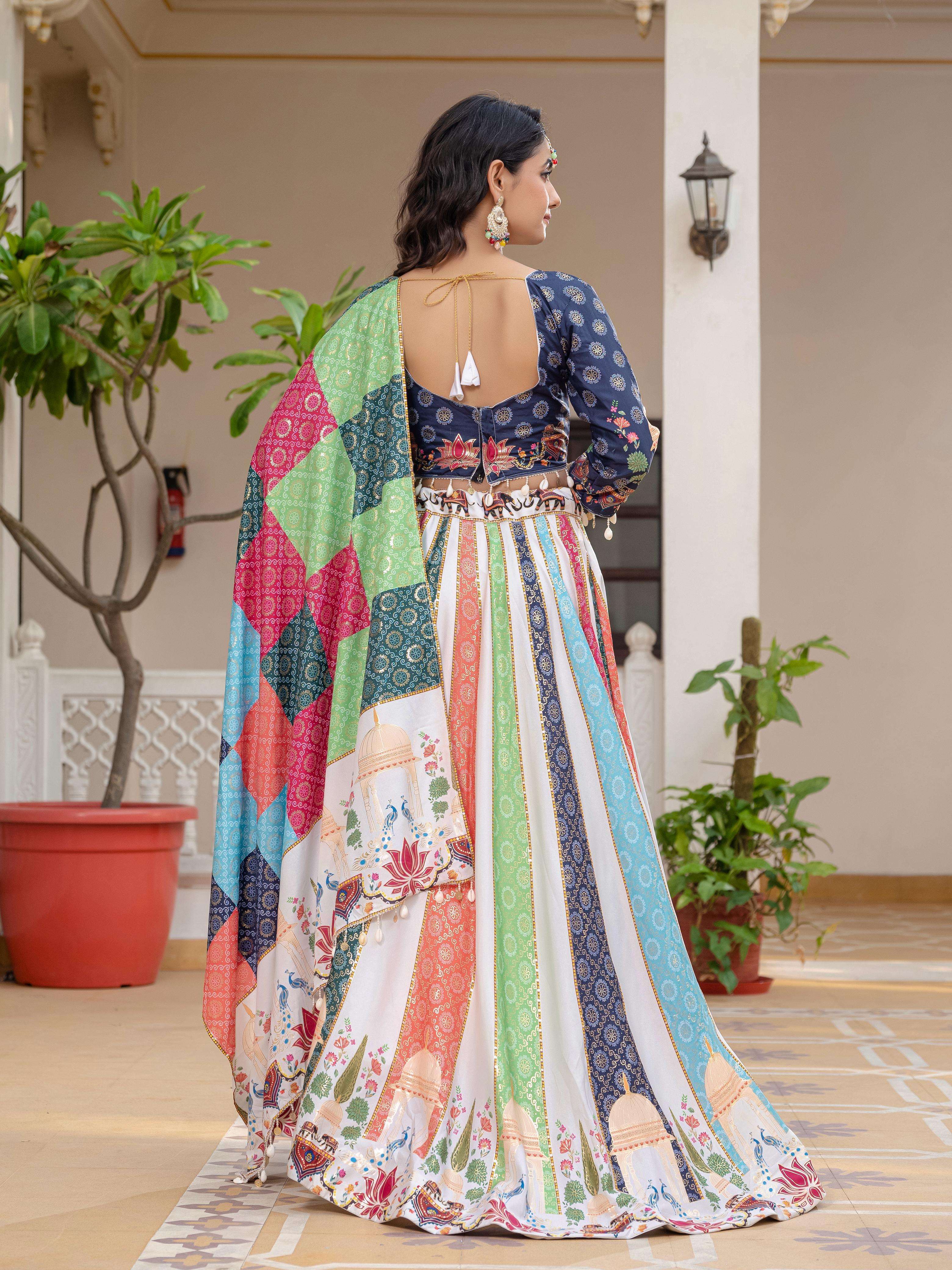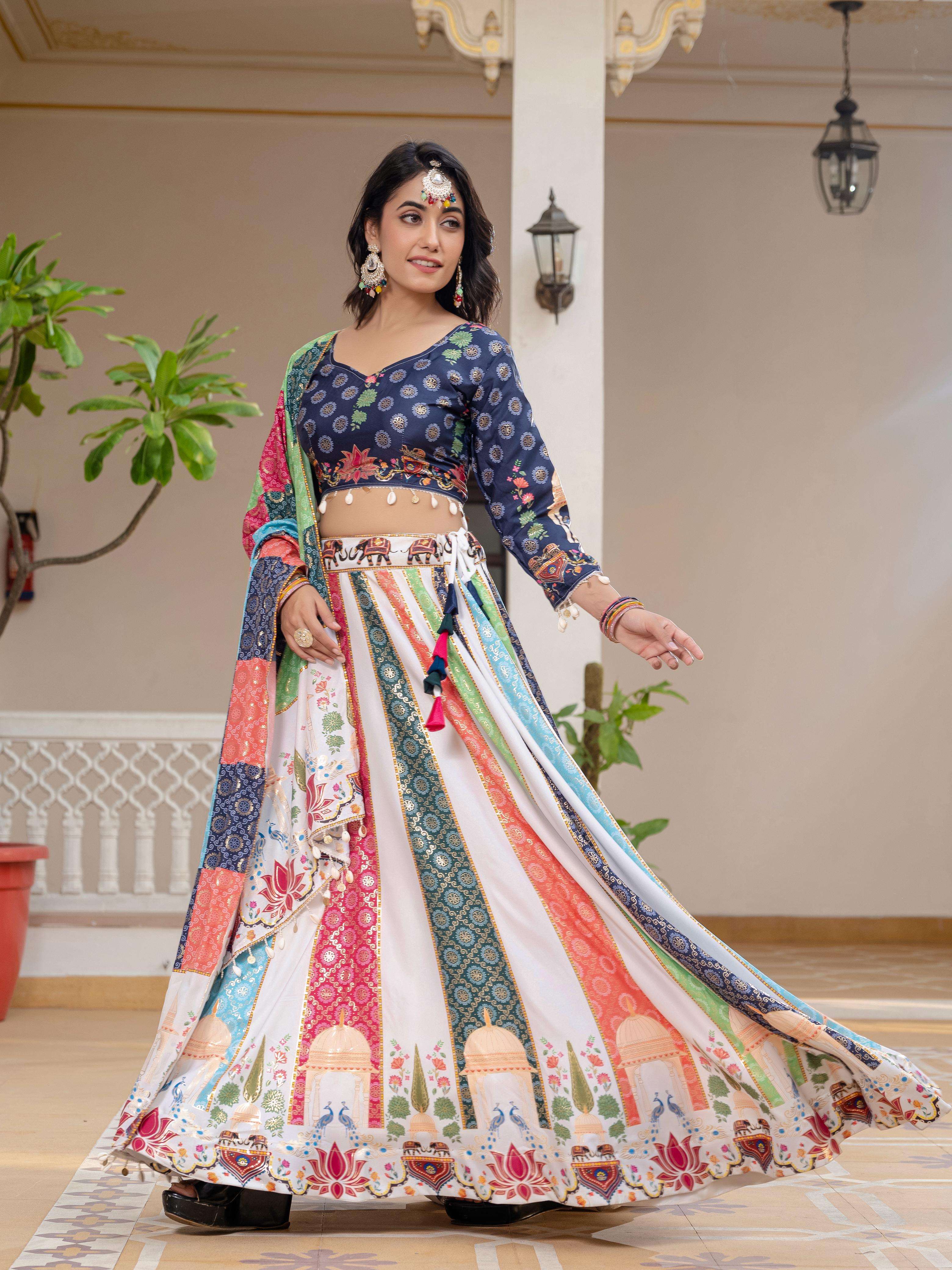 👉 *Lehenga Details* *Fabric:- FOIL PRINT ON CREPE SILK FABRIC* *Work :- CAN-CAN, CANVAS & DRAWSTRING WITH LATAKAN* *Flair :- 8 METER* *Height :- 42 Inch*
