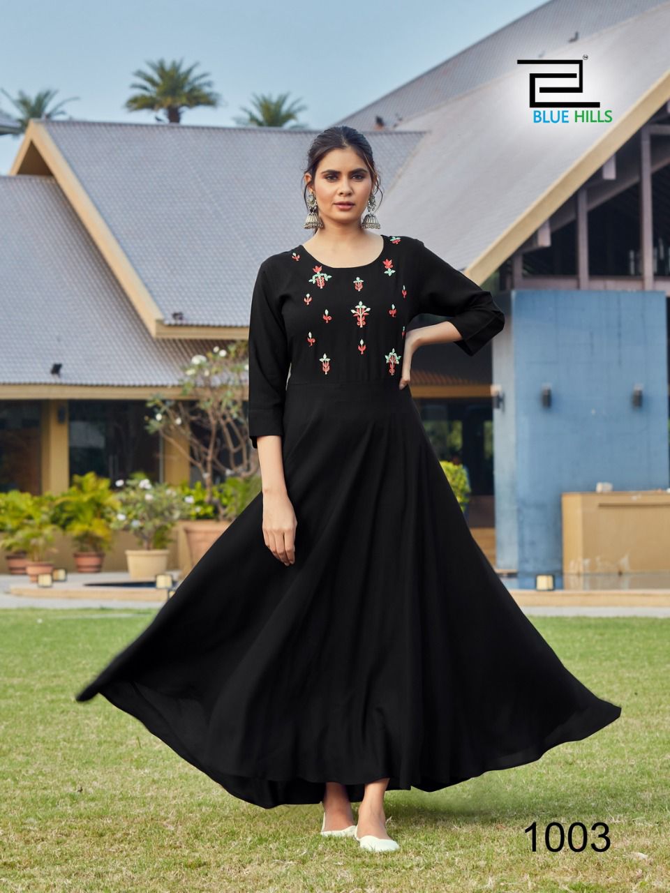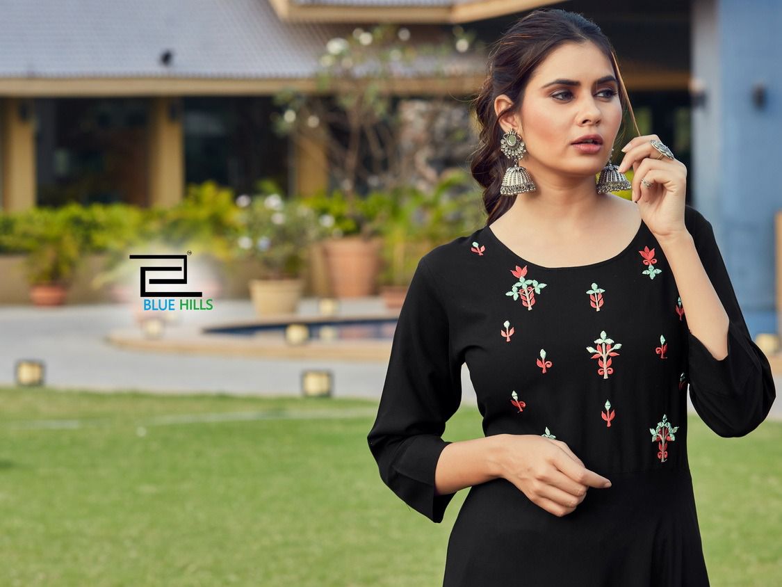 #blue hills ( readymade) Presents Eye catching Rayon 14 kg premium quality Length- 51+ - M (38) L (40) XL (42) XXL (44) Description black with embroidery and mirror work and 3.5 flair Navy blue. With embroidery work. 2.5 flair Pitch. With embroidery and hand work *Rate - 550+GST* 3 design Set to set Dispatch tomorrow |