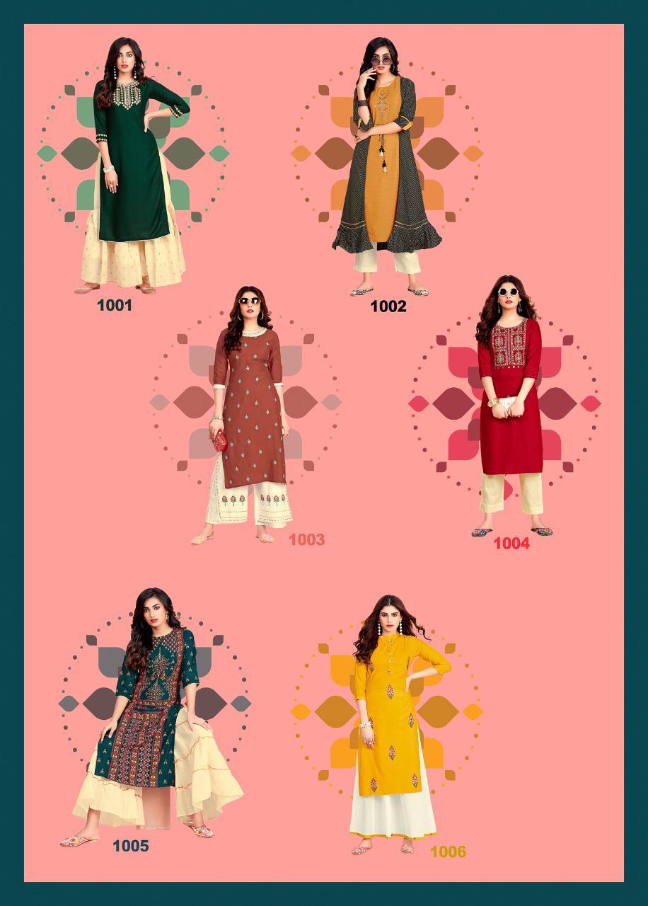 *KAJAL STYLE* Catalogue : ? *F.Beats Vol.1* ? ?Details *?Fabrics* - ??Heavy Reyon 14 kg ?? Embroidery work *?Size* - S(18) M(19) L(20) XL(22) XXL(23) 3xl(24) 4xl(25) *? Length* --> *46* *?Designs* - *1??0?? Pcs* Rate- 689+GST |