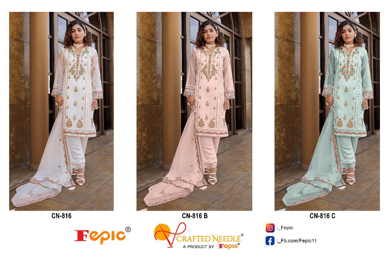 Buy Online F Cn 816 Crafted Needle Fepic Organza Embroidered Redymade Collection Manufacturer Surat 3 Pcs of Full Catalogue at Wholesale Price. Looking for F Cn 816 Crafted Needle Fepic Organza Embroidered Redymade Collection Manufacturer Surat Full Catalouge at Best Price? Buy Now F Cn 816 Crafted Needle Fepic Organza Embroidered Redymade Collection Manufacturer Surat at Wholesale Rate of Rs 4770 with Total 3 Pcs from authroized dealer and supplier of FEPIC Brand. Cost of Each piece is just only Rs 1590 which is very low and affordable price to resale the product in your retail store ,This is Surat based Wholesale Supplier & Dealer of FEPIC Brand. Click on Brand name to Know more about FEPIC Brand's products.Call or Whatsapp on 9898838984 for booking or enquiry