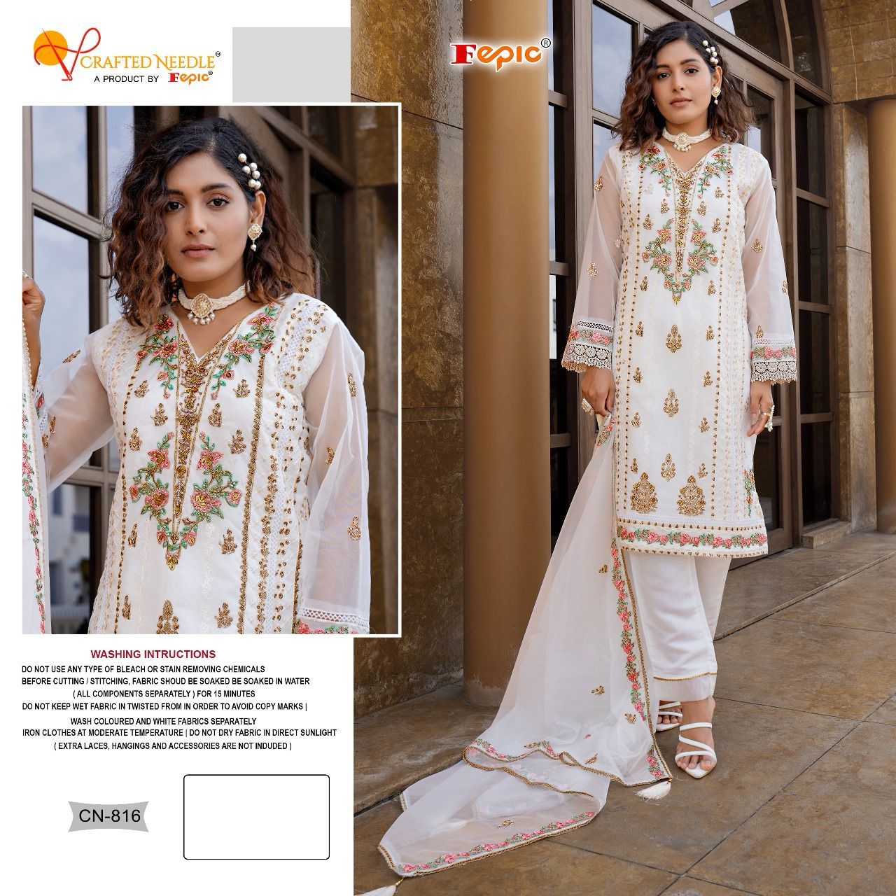 F Cn 816 Crafted Needle Fepic Organza Embroidered Redymade Collection Manufacturer Surat