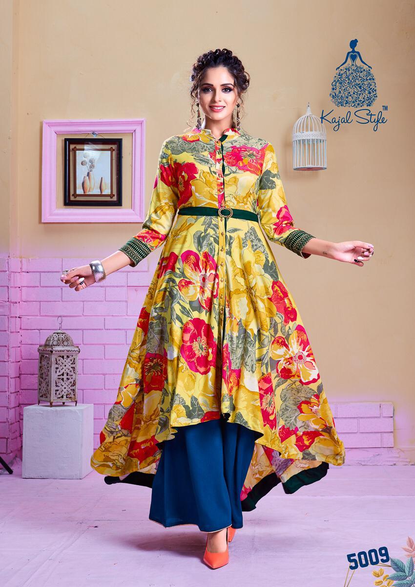 Buy Online F Season Vol 5 By Kajal Style Beautiful Concept Kurti Plazzo Pant And Gowns Wholesale Supplier And Dealer Surat 12 Pcs of Full Catalogue at Wholesale Price. Looking for F Season Vol 5 By Kajal Style Beautiful Concept Kurti Plazzo Pant And Gowns Wholesale Supplier And Dealer Surat Full Catalouge at Best Price? Buy Now F Season Vol 5 By Kajal Style Beautiful Concept Kurti Plazzo Pant And Gowns Wholesale Supplier And Dealer Surat at Wholesale Rate of Rs 7740 with Total 12 Pcs from authroized dealer and supplier of KAJAL STYLE Brand. Cost of Each piece is just only Rs 645 which is very low and affordable price to resale the product in your retail store ,This is Surat based Wholesale Supplier & Dealer of KAJAL STYLE Brand. Click on Brand name to Know more about KAJAL STYLE Brand's products.Call or Whatsapp on 9898838984 for booking or enquiry