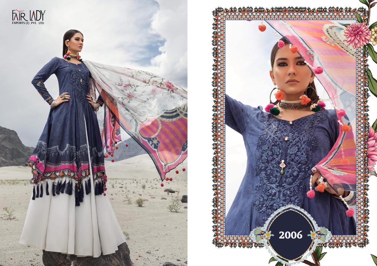 Thank you for your support Today we *MUMTAZ ARTSÂ?* are launching our new firm *FAIR LADY EXPORTS(I)PVT LTDÂ?* with an exclusive series of *digital print with exclusive heavy embroidery + ORIGINAL PAKISTANI SHILFLI COLLECTION * CATALOGUE NAME:- *FAIR LADY M PRINTS* *_HEAVY EMBROIDERY PATCHES ON EACH SUIT WITH ORIGINAL PAKISTANI SHILFI ON ONE SUIT(#2002)_* DESIGNS:- *HIT 7 DESIGNS SET* FABRIC DETAILS:- TOP:-PURE JAM SATIN DIGITAL PRINT WITH EMBROIDERY DUP:-BLENDED CHIFFON WITH EXCLUSIVE PRINTS BOT:- *D.N. 4&7 PRINTED* REST ALL DYED COTTON *RATE:- 689/- + GST* *_SEQUENCE HEAVY EMBROIDERY_* *_DESIGN NUMBER 2002 HEAVY SHIFLI WORK*_ *FABRIC + EMBROIDERY QUALITY UN COMPARABLE * |