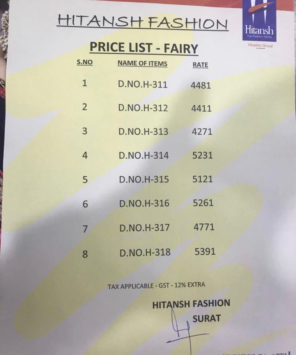 Brand - Hitansh . Series - 311 to 318. * Set & Loose * GST 12 Percent Extra. Delivery- Running Single and multipal available Bolk now For singleÂ?s price call or whatsapp on +919898838984 |