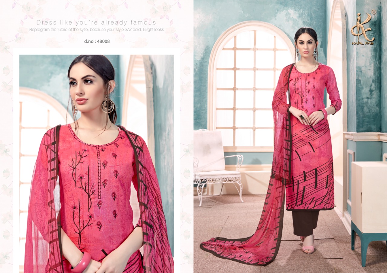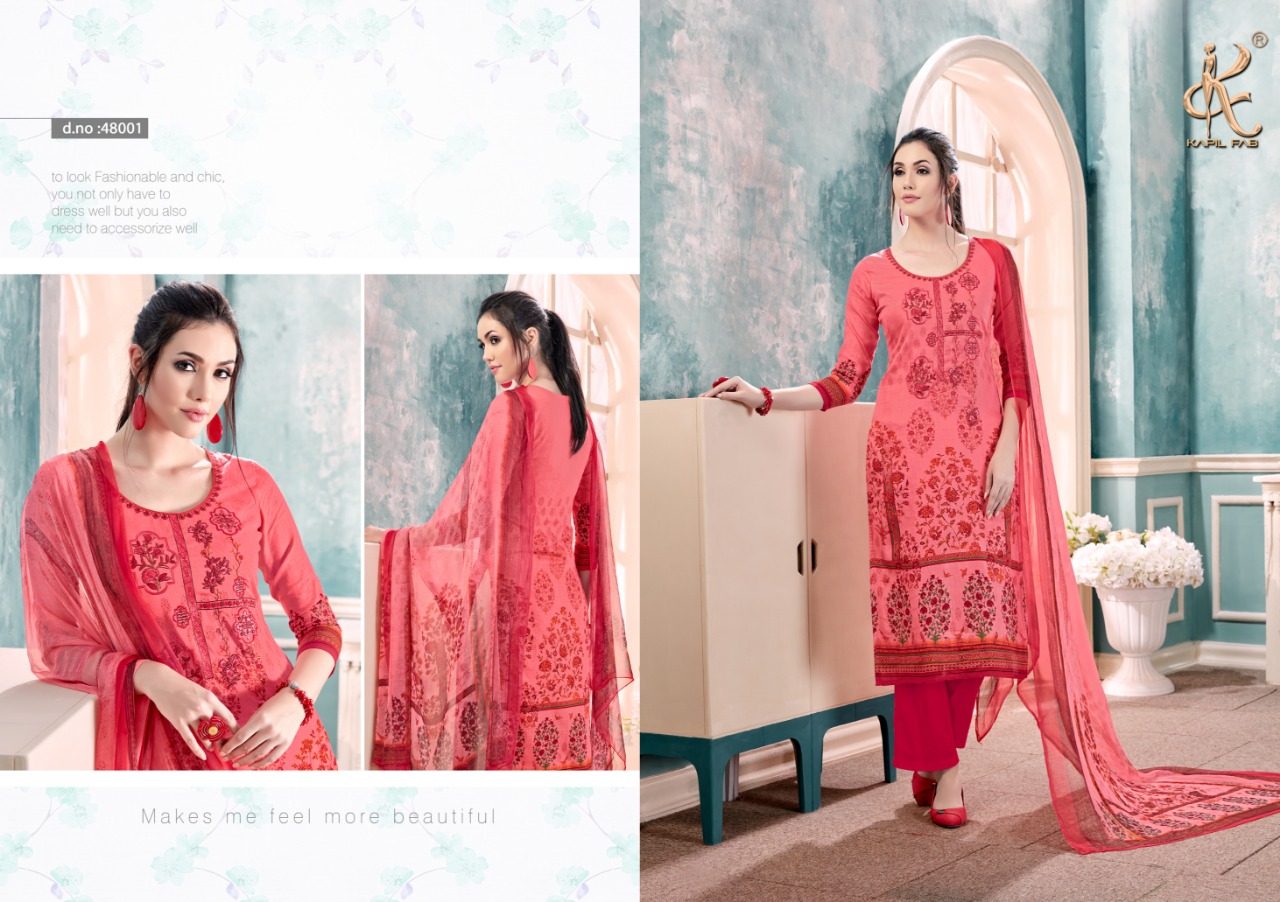 Buy Online Falaq By Kapil Fab 48001 Series Cotton Satin Printed Salwar Kameez Catlog Wholesale Dealer And Supplier Surat 8 Pcs of Full Catalogue at Wholesale Price. Looking for Falaq By Kapil Fab 48001 Series Cotton Satin Printed Salwar Kameez Catlog Wholesale Dealer And Supplier Surat Full Catalouge at Best Price? Buy Now Falaq By Kapil Fab 48001 Series Cotton Satin Printed Salwar Kameez Catlog Wholesale Dealer And Supplier Surat at Wholesale Rate of Rs 6200 with Total 8 Pcs from authroized dealer and supplier of KAPIL TRENDZ Brand. Cost of Each piece is just only Rs 775 which is very low and affordable price to resale the product in your retail store ,This is Surat based Wholesale Supplier & Dealer of KAPIL TRENDZ Brand. Click on Brand name to Know more about KAPIL TRENDZ Brand's products.Call or Whatsapp on 9898838984 for booking or enquiry