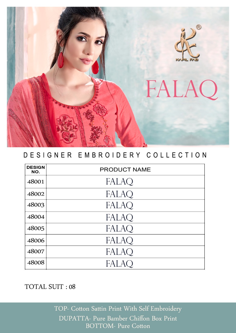 Falaq By Kapil Fab 48001 Series Cotton Satin Printed Salwar Kameez Catlog Wholesale Dealer And Supplier Surat