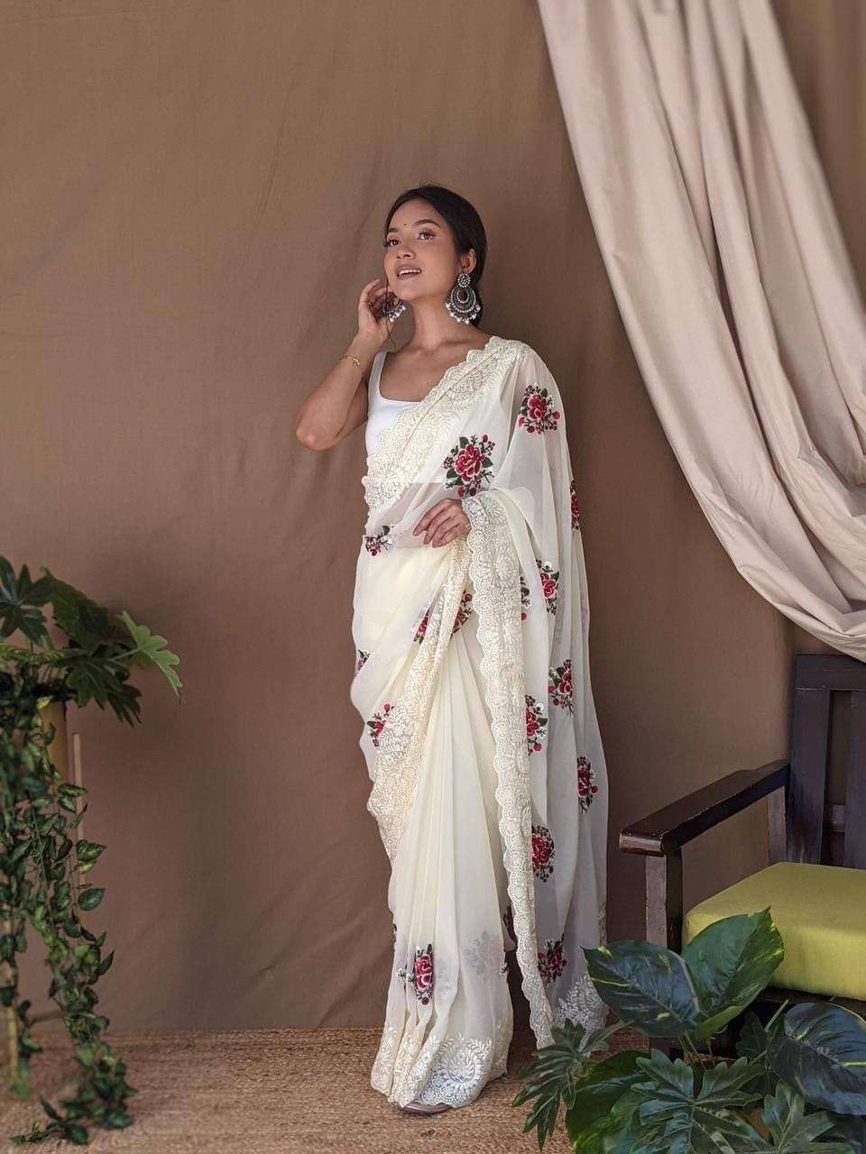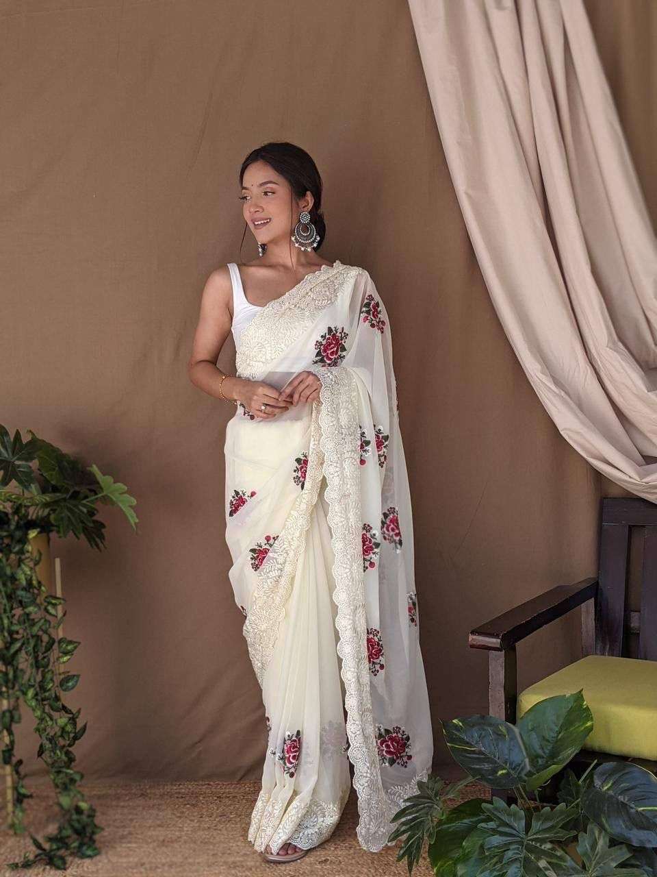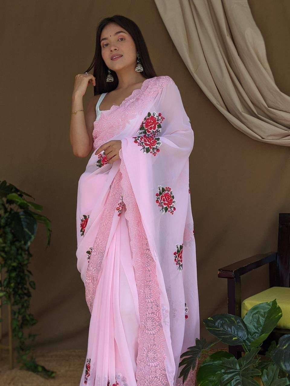 Catalog Name : *Fana* No of Pcs : 5 Fabric : georgette silk Work : Pure georgett silk saree having beautiful flowers work and cutwork of matching thread work with banglori silk blouse with banglori silk blouse