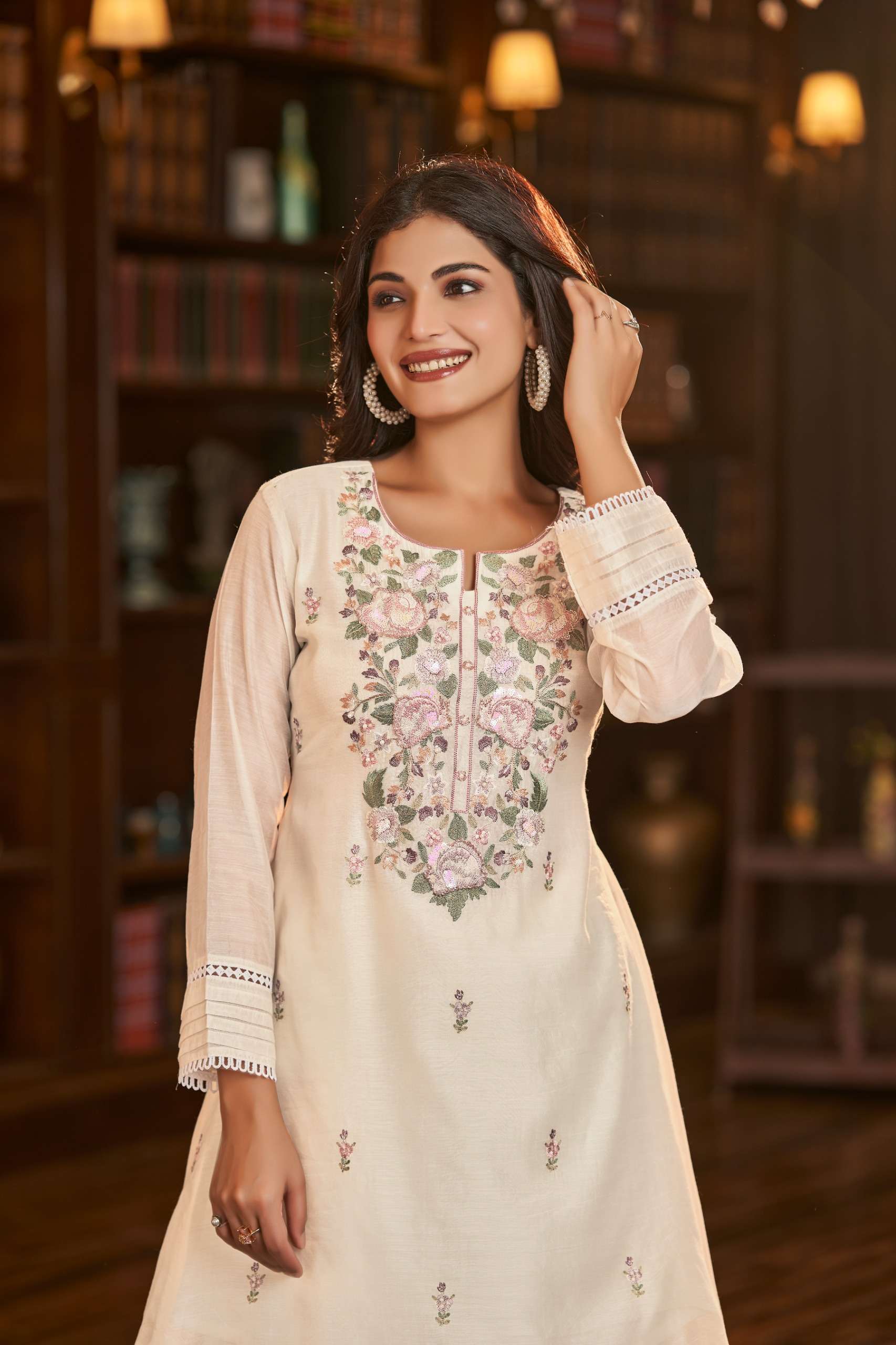 Fabric - TOP - PURE MUL CHANDERI WITH COTTON LINING Bottom - PURE MUL CHANDERI WITH COTTON LINING WORK : HANDWORK & APPLIQUE