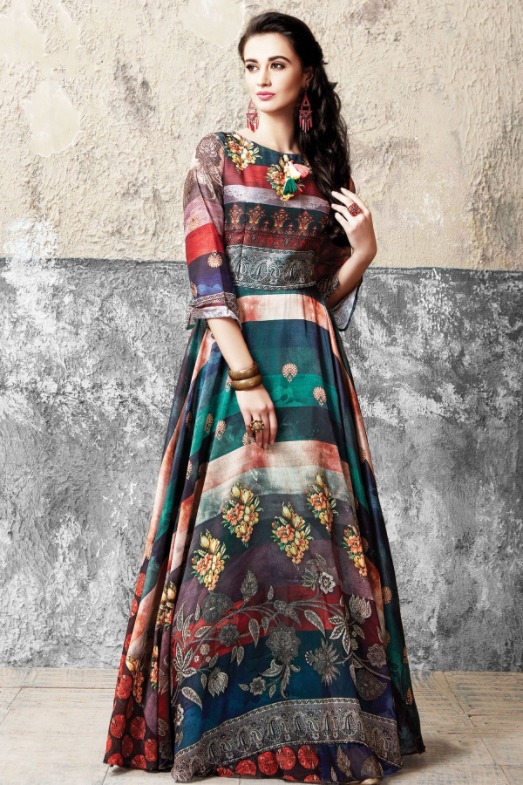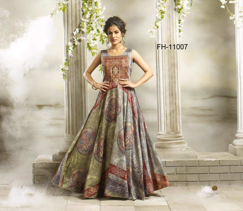 Fancy Party Wear Digital Printed Gown Suit Collection Wholesaler Surat