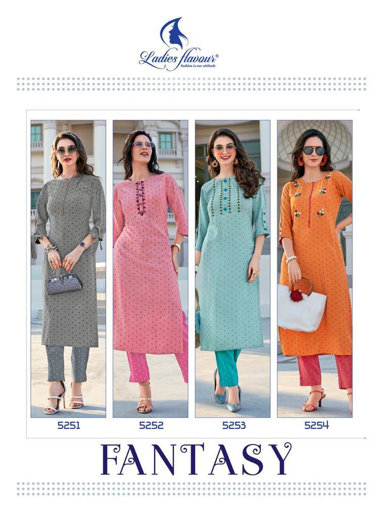 Buy Online Fantasy By Ladies Flavor Kurtis With Bottom Set And Single Wholesale Supplier And Dealer Gujarat 4 Pcs of Full Catalogue at Wholesale Price. Looking for Fantasy By Ladies Flavor Kurtis With Bottom Set And Single Wholesale Supplier And Dealer Gujarat Full Catalouge at Best Price? Buy Now Fantasy By Ladies Flavor Kurtis With Bottom Set And Single Wholesale Supplier And Dealer Gujarat at Wholesale Rate of Rs 3300 with Total 4 Pcs from authroized dealer and supplier of Ladies Flavour Brand. Cost of Each piece is just only Rs 825 which is very low and affordable price to resale the product in your retail store ,This is Surat based Wholesale Supplier & Dealer of Ladies Flavour Brand. Click on Brand name to Know more about Ladies Flavour Brand's products.Call or Whatsapp on 9898838984 for booking or enquiry