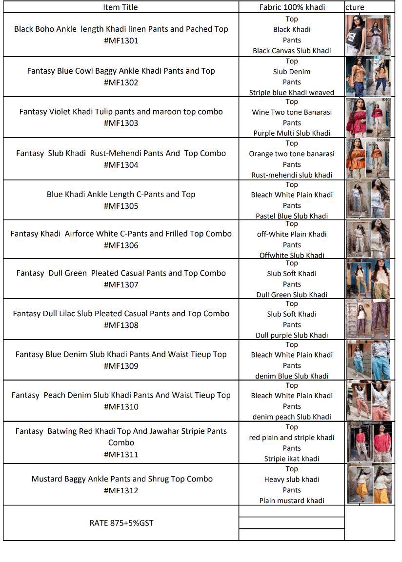 Buy Online Fantasy Khadi Top Bottom Vol 4 By Nitya Nx Classic Summer Collection Wholesale Supplier Gujarat 12 Pcs of Full Catalogue at Wholesale Price. Looking for Fantasy Khadi Top Bottom Vol 4 By Nitya Nx Classic Summer Collection Wholesale Supplier Gujarat Full Catalouge at Best Price? Buy Now Fantasy Khadi Top Bottom Vol 4 By Nitya Nx Classic Summer Collection Wholesale Supplier Gujarat at Wholesale Rate of Rs 10500 with Total 12 Pcs from authroized dealer and supplier of Brand. Cost of Each piece is just only Rs 875 which is very low and affordable price to resale the product in your retail store ,This is Surat based Wholesale Supplier & Dealer of Brand. Click on Brand name to Know more about Brand's products.Call or Whatsapp on 9898838984 for booking or enquiry