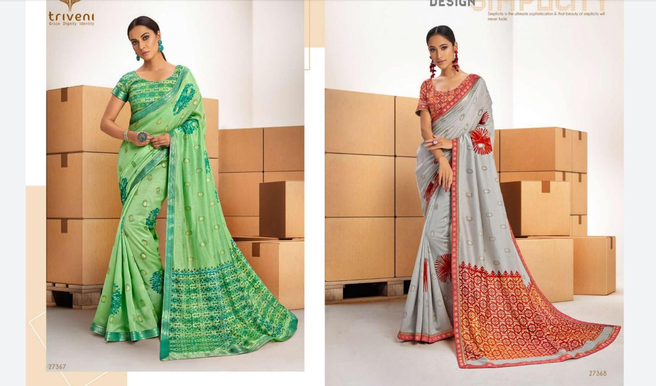 Brand - Triveni. Catlog name - FANTASY VOL-2. Fabric- Vichitra . Rate - 711 per Pcs . Set to set. GST 5 Percent Extra. Delivery- Today |