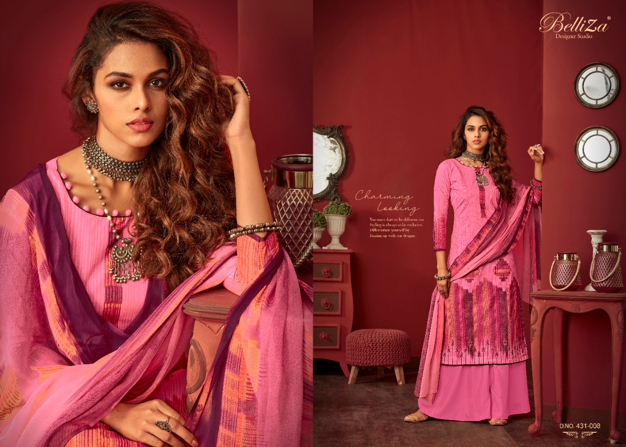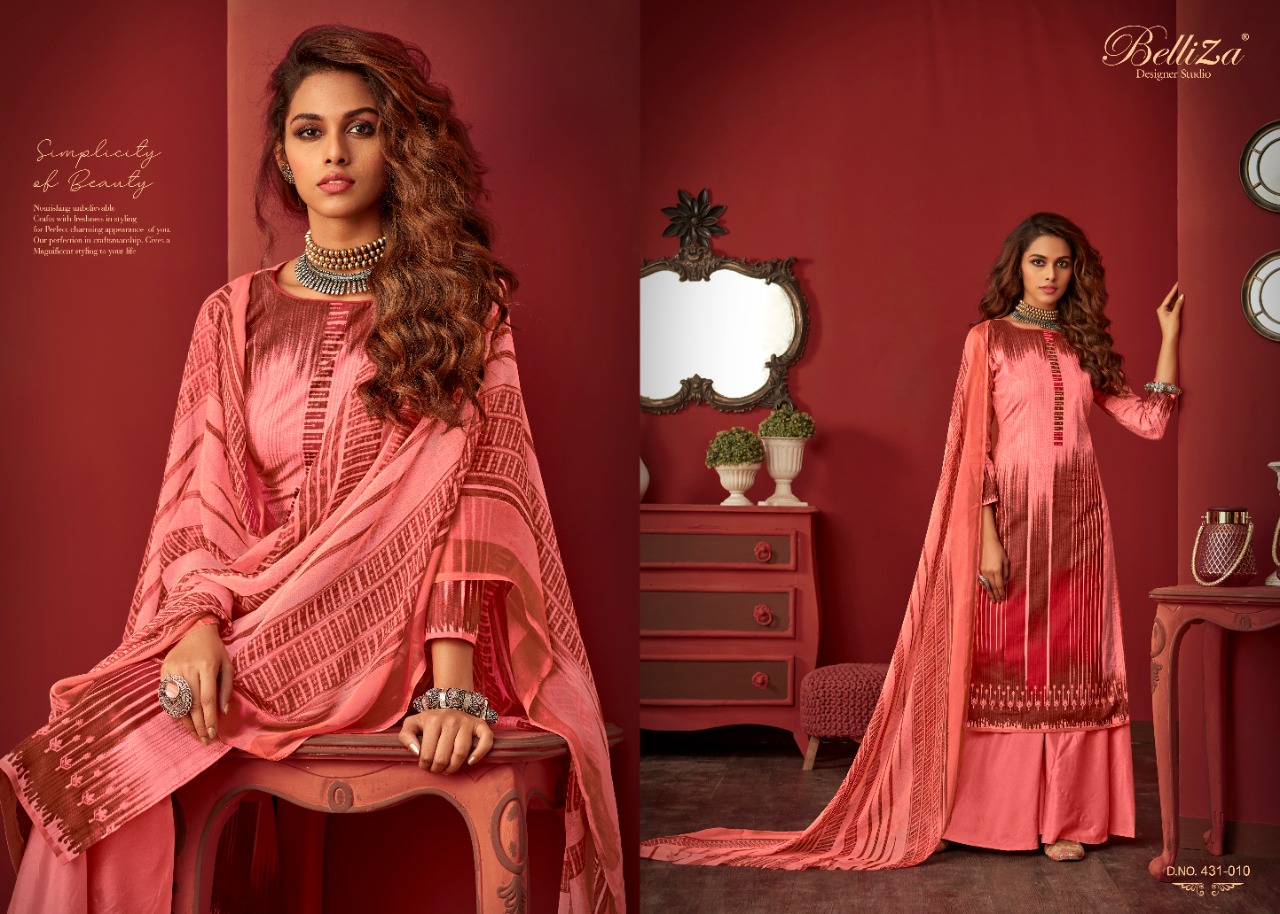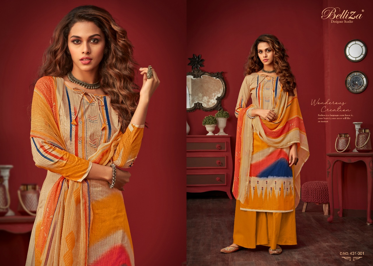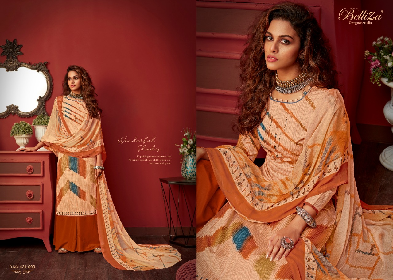 # Pure Premium Cotton # Exclusive Designer Collection _*......BelliZa DesigNer StuDio......*_ _presents_ *"FARHANA"* _...pure cotton collection..._ ?Top: 100% Pure Cotton Digital style Print (2.50 mtrs) ?Dupatta: Exclusive Printed Nazneen chiffon dupatta with four side lace. (2.30 mtr) ?Bottom: pure cotton (3 mtrs) ?Pcs: 10 ? Rate: 459/- (Applicable GST extra) At Belliza, Quality Fabrics with Exquisite Designs at Best Price is Our 'Cherished Legacy'. |