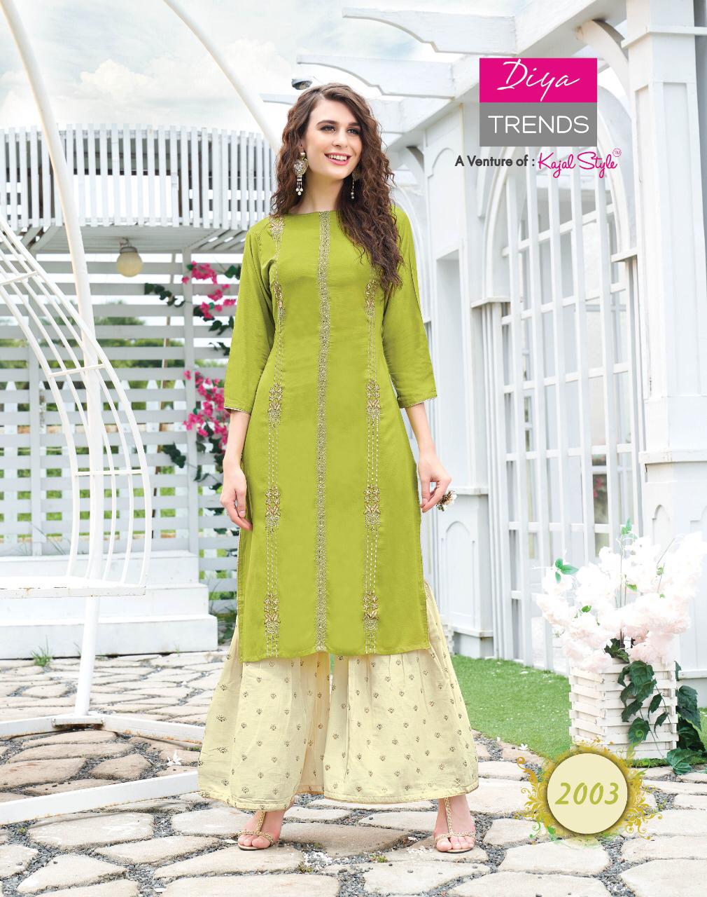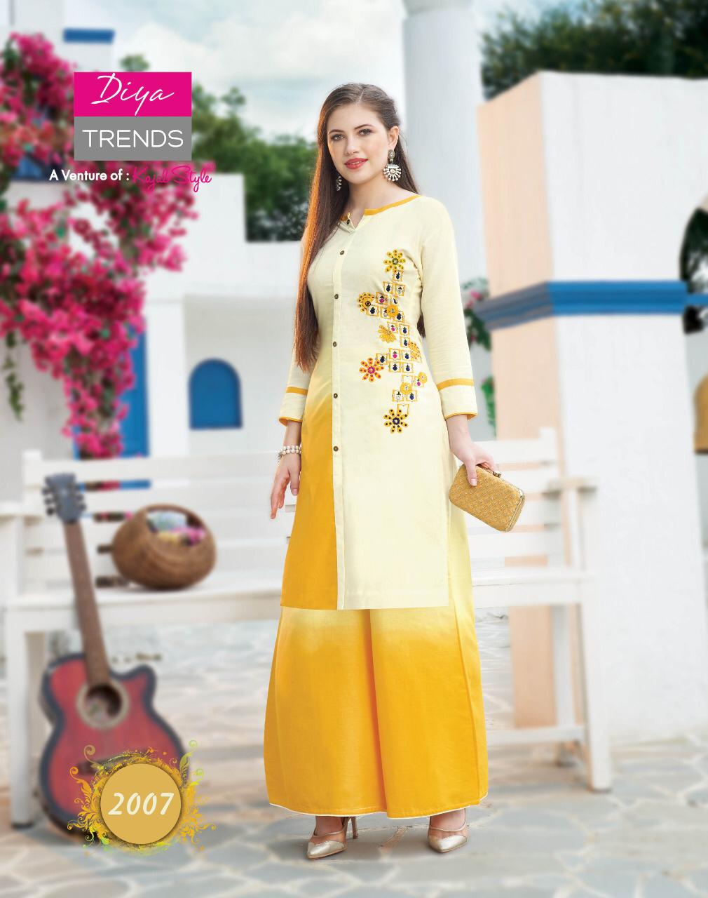 Buy Online Fashion Angel Vol 2 By Diya Trendz Kurtis With Bottom Wholesale Supplier And Dealer Surat 10 Pcs of Full Catalogue at Wholesale Price. Looking for Fashion Angel Vol 2 By Diya Trendz Kurtis With Bottom Wholesale Supplier And Dealer Surat Full Catalouge at Best Price? Buy Now Fashion Angel Vol 2 By Diya Trendz Kurtis With Bottom Wholesale Supplier And Dealer Surat at Wholesale Rate of Rs 6000 with Total 10 Pcs from authroized dealer and supplier of Brand. Cost of Each piece is just only Rs 600 which is very low and affordable price to resale the product in your retail store ,This is Surat based Wholesale Supplier & Dealer of Brand. Click on Brand name to Know more about Brand's products.Call or Whatsapp on 9898838984 for booking or enquiry