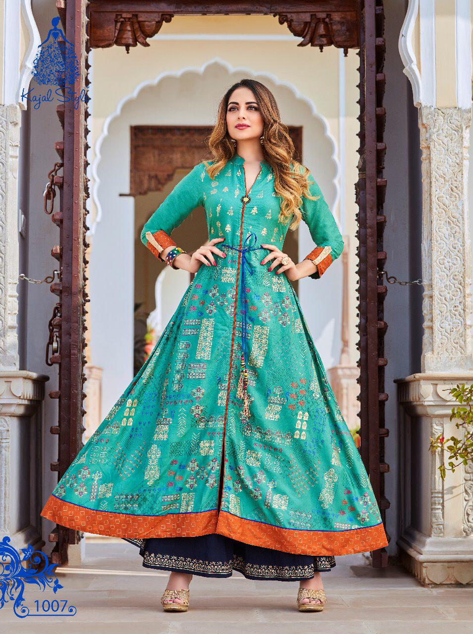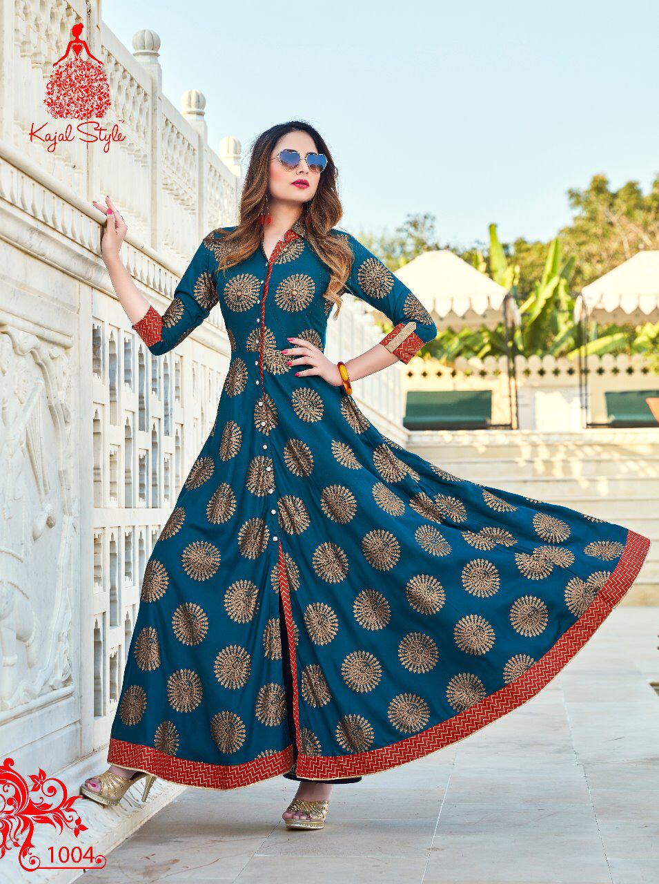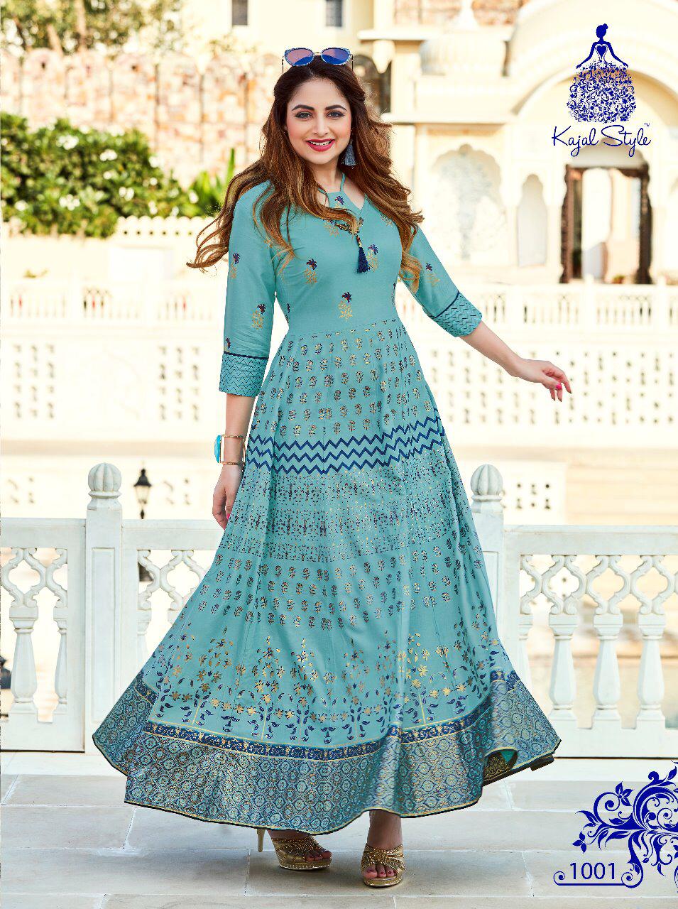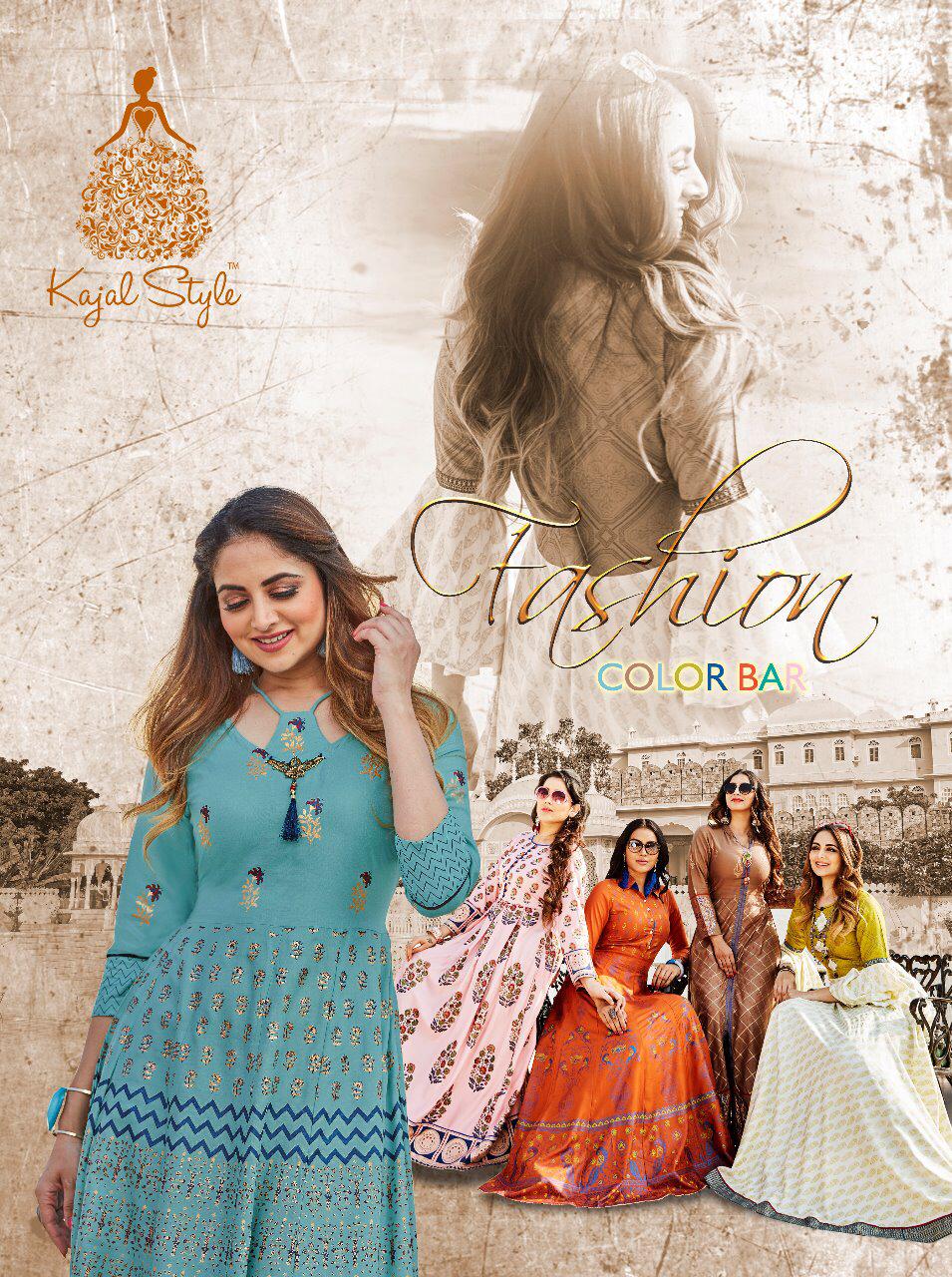 Buy Online Fashion Colour Bar Vol 1 By Kajal Style 1001 Series Fancy Gown Style Party Wear Kurti Collection Wholesale Dealer Surat 8 Pcs of Full Catalogue at Wholesale Price. Looking for Fashion Colour Bar Vol 1 By Kajal Style 1001 Series Fancy Gown Style Party Wear Kurti Collection Wholesale Dealer Surat Full Catalouge at Best Price? Buy Now Fashion Colour Bar Vol 1 By Kajal Style 1001 Series Fancy Gown Style Party Wear Kurti Collection Wholesale Dealer Surat at Wholesale Rate of Rs 5520 with Total 8 Pcs from authroized dealer and supplier of KAJAL STYLE Brand. Cost of Each piece is just only Rs 690 which is very low and affordable price to resale the product in your retail store ,This is Surat based Wholesale Supplier & Dealer of KAJAL STYLE Brand. Click on Brand name to Know more about KAJAL STYLE Brand's products.Call or Whatsapp on 9898838984 for booking or enquiry