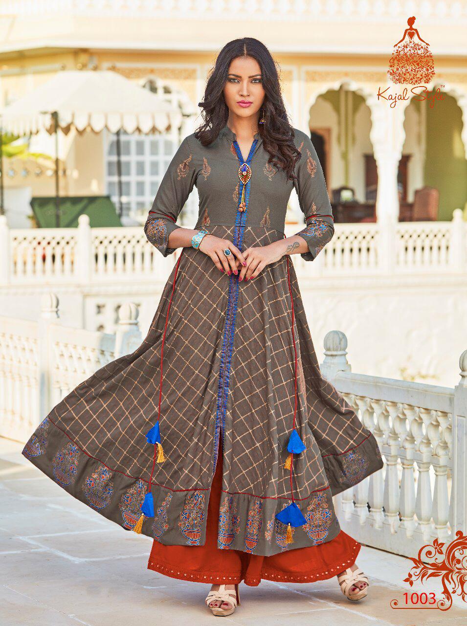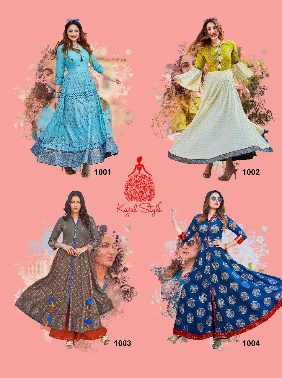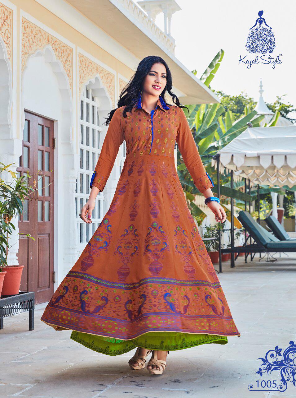 Buy Online Fashion Colour Bar Vol 1 By Kajal Style 1001 Series Fancy Gown Style Party Wear Kurti Collection Wholesale Dealer Surat 8 Pcs of Full Catalogue at Wholesale Price. Looking for Fashion Colour Bar Vol 1 By Kajal Style 1001 Series Fancy Gown Style Party Wear Kurti Collection Wholesale Dealer Surat Full Catalouge at Best Price? Buy Now Fashion Colour Bar Vol 1 By Kajal Style 1001 Series Fancy Gown Style Party Wear Kurti Collection Wholesale Dealer Surat at Wholesale Rate of Rs 5520 with Total 8 Pcs from authroized dealer and supplier of KAJAL STYLE Brand. Cost of Each piece is just only Rs 690 which is very low and affordable price to resale the product in your retail store ,This is Surat based Wholesale Supplier & Dealer of KAJAL STYLE Brand. Click on Brand name to Know more about KAJAL STYLE Brand's products.Call or Whatsapp on 9898838984 for booking or enquiry