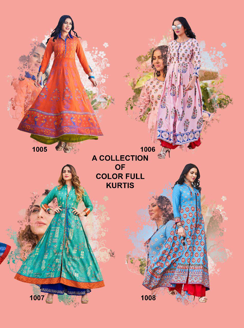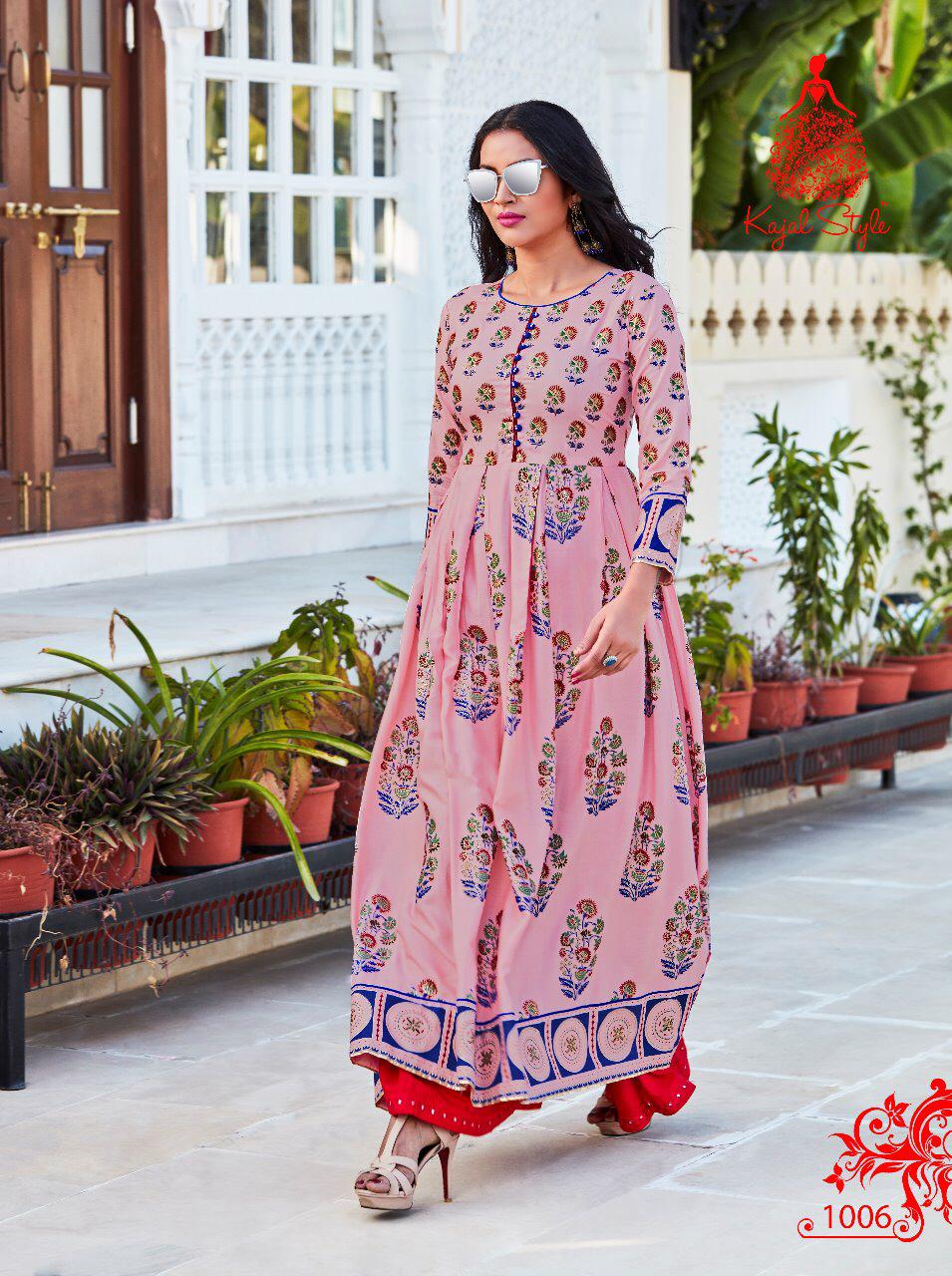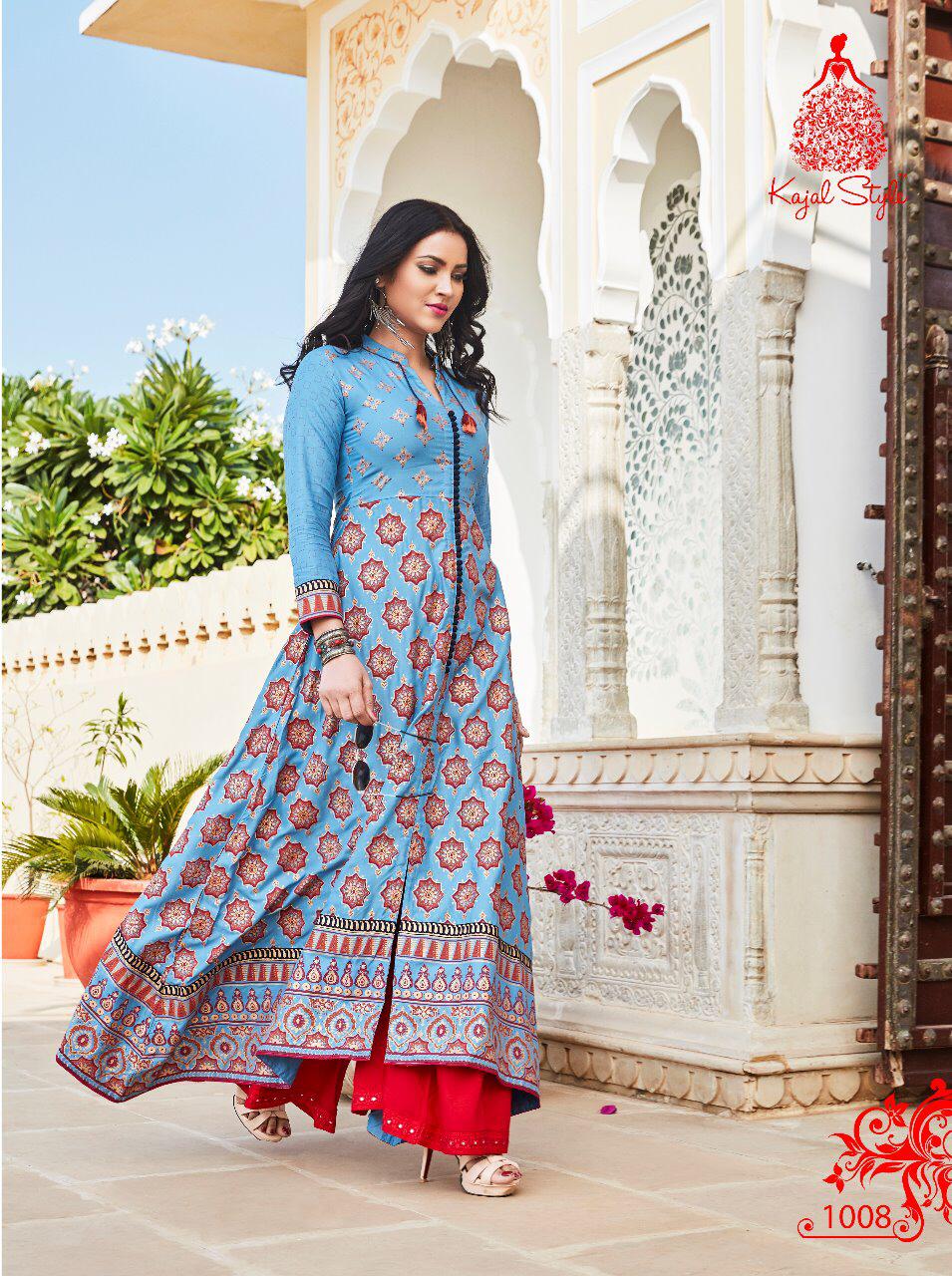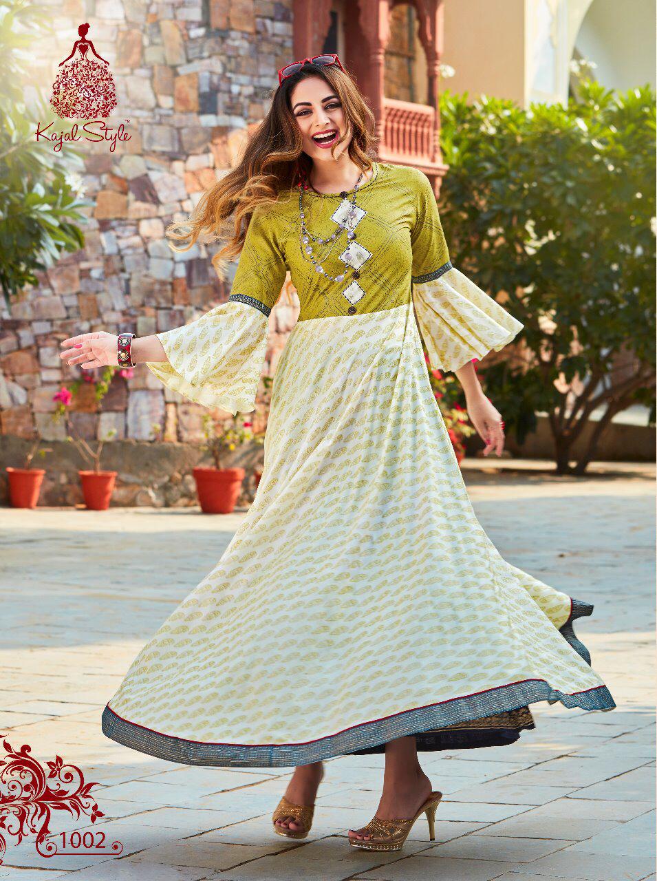 Buy Online Fashion Colour Bar Vol 1 By Kajal Style 1001 Series Fancy Gown Style Party Wear Kurti Collection Wholesale Dealer Surat 8 Pcs of Full Catalogue at Wholesale Price. Looking for Fashion Colour Bar Vol 1 By Kajal Style 1001 Series Fancy Gown Style Party Wear Kurti Collection Wholesale Dealer Surat Full Catalouge at Best Price? Buy Now Fashion Colour Bar Vol 1 By Kajal Style 1001 Series Fancy Gown Style Party Wear Kurti Collection Wholesale Dealer Surat at Wholesale Rate of Rs 5520 with Total 8 Pcs from authroized dealer and supplier of KAJAL STYLE Brand. Cost of Each piece is just only Rs 690 which is very low and affordable price to resale the product in your retail store ,This is Surat based Wholesale Supplier & Dealer of KAJAL STYLE Brand. Click on Brand name to Know more about KAJAL STYLE Brand's products.Call or Whatsapp on 9898838984 for booking or enquiry