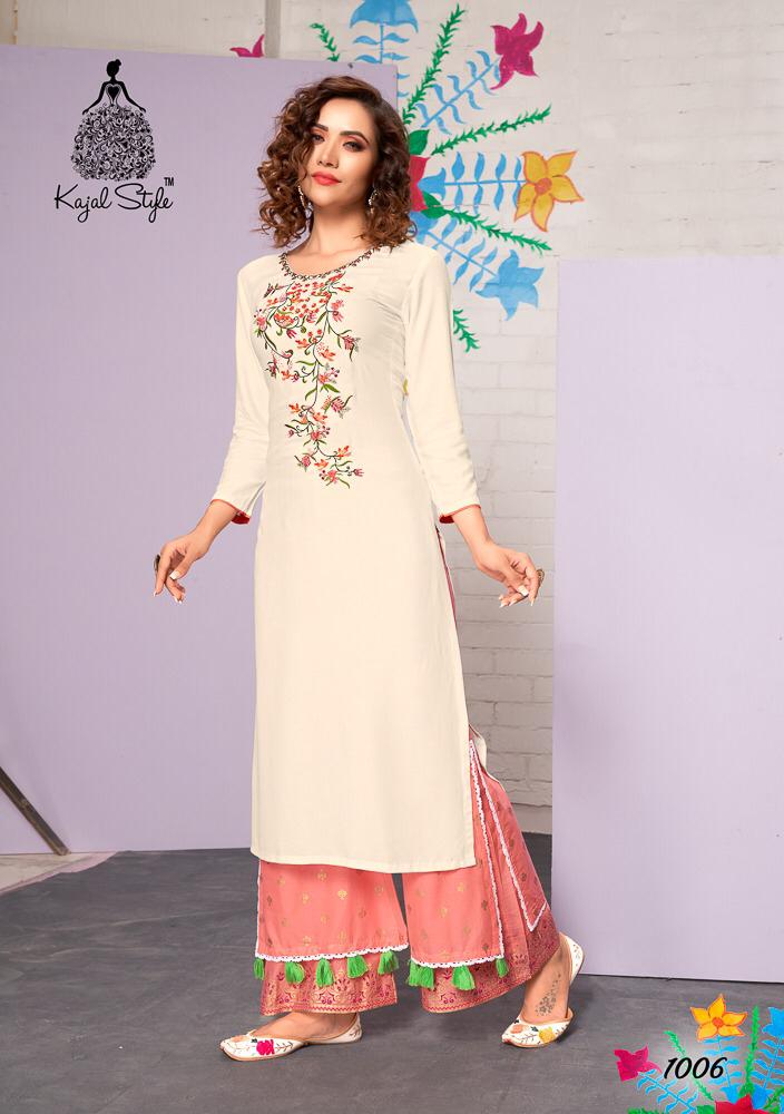 Buy Online Fashion Label Vol 1 By Kajal Style Designer Kurtis With Plazzo Wholesale Supplier Surat 8 Pcs of Full Catalogue at Wholesale Price. Looking for Fashion Label Vol 1 By Kajal Style Designer Kurtis With Plazzo Wholesale Supplier Surat Full Catalouge at Best Price? Buy Now Fashion Label Vol 1 By Kajal Style Designer Kurtis With Plazzo Wholesale Supplier Surat at Wholesale Rate of Rs 5400 with Total 8 Pcs from authroized dealer and supplier of KAJAL STYLE Brand. Cost of Each piece is just only Rs 675 which is very low and affordable price to resale the product in your retail store ,This is Surat based Wholesale Supplier & Dealer of KAJAL STYLE Brand. Click on Brand name to Know more about KAJAL STYLE Brand's products.Call or Whatsapp on 9898838984 for booking or enquiry