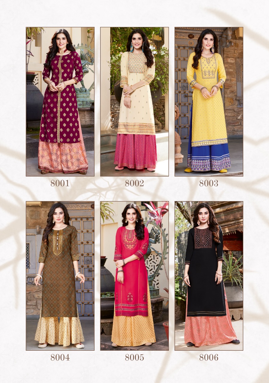 ? ? ? *KAJAL STYLE* Catalogue name: ? *_Fashion_ Label Vol.8* ? ?Details: ?Pattern :- *Kurti with Flair Plazzo, & Sharara* ?Fabrics - *?? Heavy Reyon* *?? Fancy Embroidery work* *?? Classy Prints* ?Size - *S M L XL 2XL 3XL 4XL* ? Length Â?> *46 to 48* ?Designs - *10pcs* ??????hurryyy uppp....Book your order now...????????? Regards, *RATE* :- 6??7??5??? *GST* |