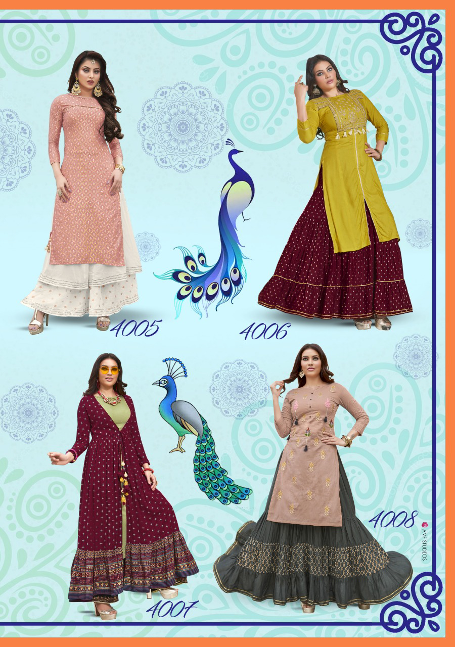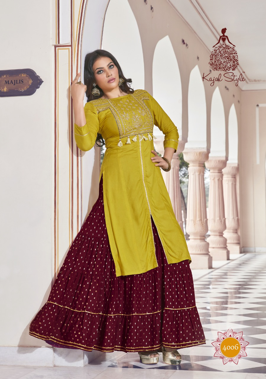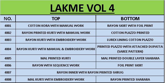 Buy Online Fashion Lakme Vol 4 By Kajal Style Designer Kurti With Shurg Or Bottom Set And Single Wholesale Supplier Surat 8 Pcs of Full Catalogue at Wholesale Price. Looking for Fashion Lakme Vol 4 By Kajal Style Designer Kurti With Shurg Or Bottom Set And Single Wholesale Supplier Surat Full Catalouge at Best Price? Buy Now Fashion Lakme Vol 4 By Kajal Style Designer Kurti With Shurg Or Bottom Set And Single Wholesale Supplier Surat at Wholesale Rate of Rs 6520 with Total 8 Pcs from authroized dealer and supplier of KAJAL STYLE Brand. Cost of Each piece is just only Rs 815 which is very low and affordable price to resale the product in your retail store ,This is Surat based Wholesale Supplier & Dealer of KAJAL STYLE Brand. Click on Brand name to Know more about KAJAL STYLE Brand's products.Call or Whatsapp on 9898838984 for booking or enquiry
